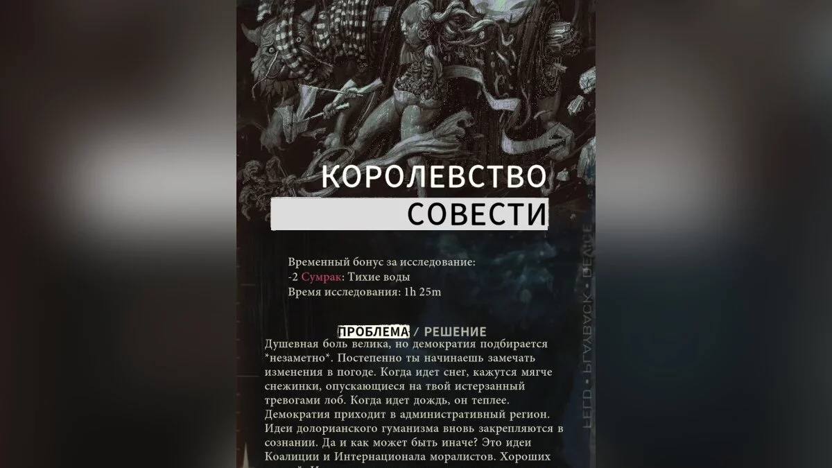 Как именно работает кабинет мыслей и мысли внутри него? Когда ваш персонаж узнает больше о мире игры и о себе, он получает доступ к различным мыслям — мировоззрениям, идеологиям, личностным чертам, увлечениям.