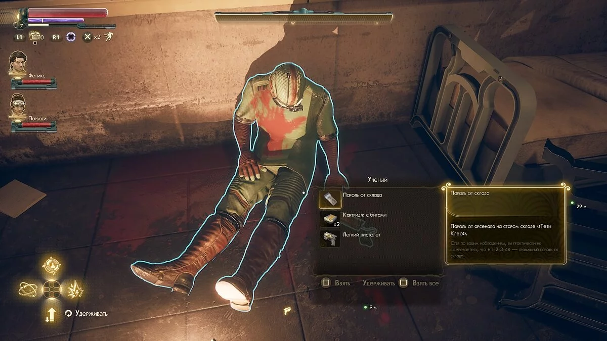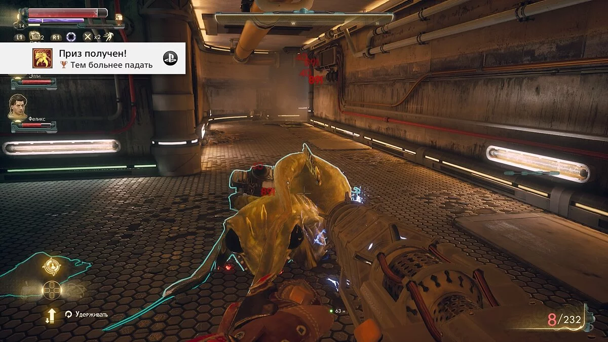 - Найдите научное оружие. Зайдите в жилые помещения, которые расположены справа от поста охраны. Там заберитесь на спальные капсулы и пройдите до конца стены. Вы окажетесь в ангаре с преступниками. Перебейте их и заберите ключ-карту с тела лидера. Заходите в закрытую дверь и забирайте оружие. После этого запустится квест по поиску остального оружия. Как найти все экземпляры читайте в отдельном гайде.