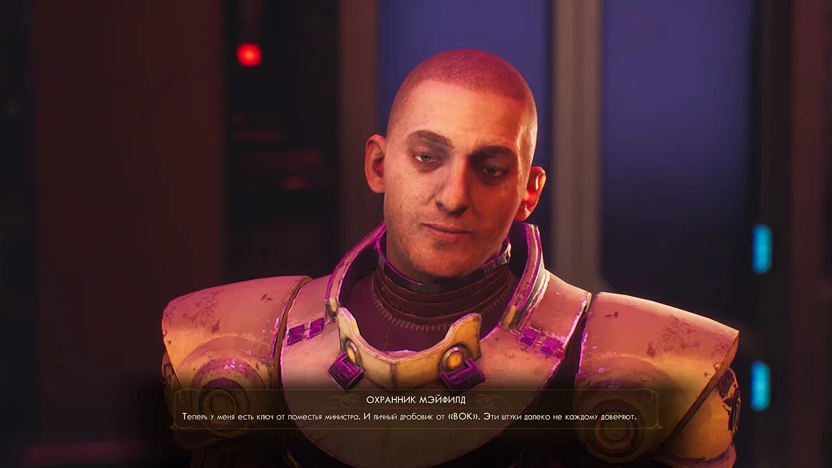 Далее идите к пропускному пункту и поговорите с капралом Уилером. Он расскажет о том, что корабль задержан и придется разбираться с представителем коллегии Удомом Бедфордом. У капрала можно взять квест «На страже здоровья».