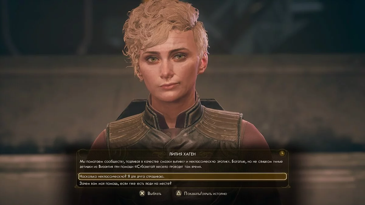- Сходите к Лилии Хаген, главе Субсвета. Это одна из фракций, у которой есть своя квестовая цепочка. От того, как вы в итоге поступите с ее лидером, будет зависеть судьба всей корпорации в концовке.
