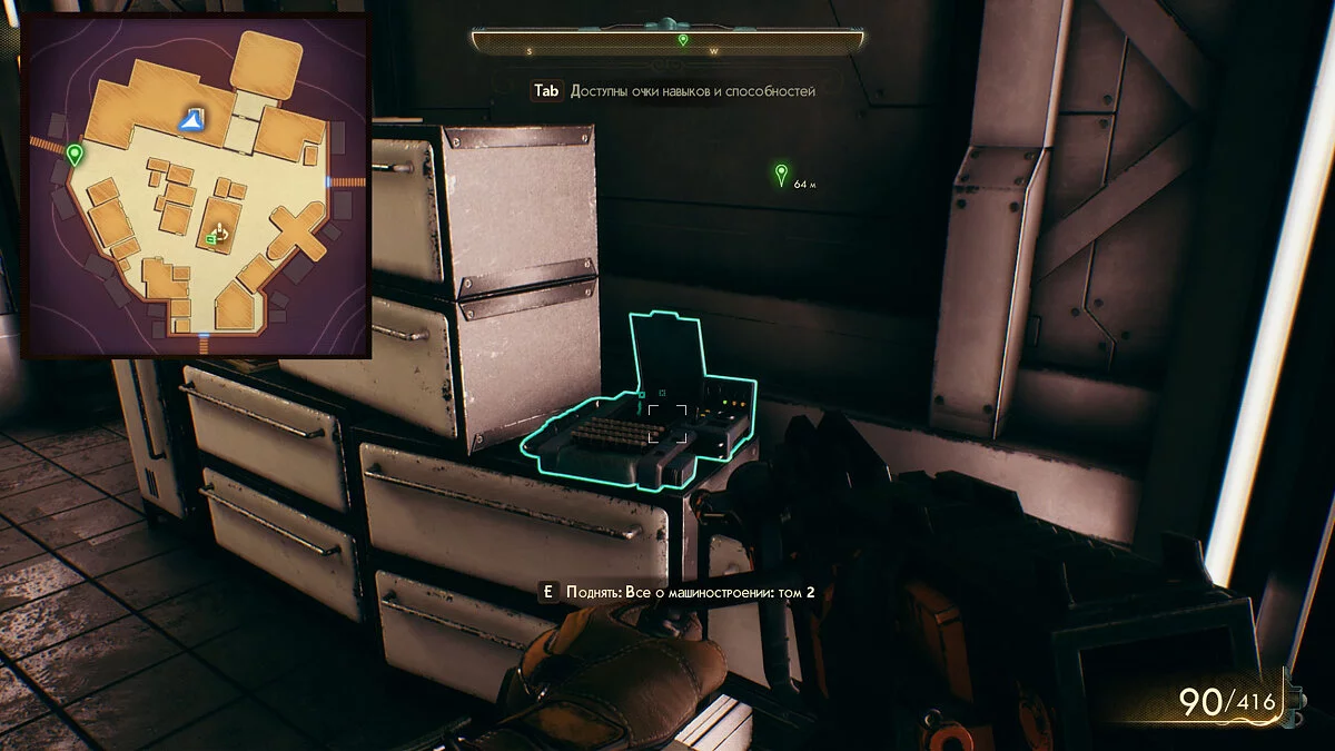 В лагере отщепенцев можно взять еще два квеста: «Родственные души» и «Напуганный инженер». Ничего сложного в них нет, просто ориентируйтесь по маркерам. Если испытываете затруднения, то вот расположение всех томов «Все о машиностроении».