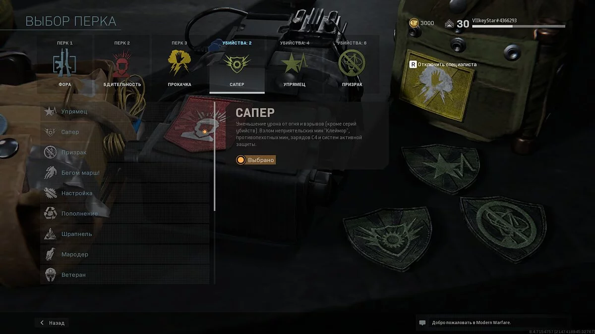 - Призрак (Ghost) — БПЛА, радиолокационные БПЛА и датчики сердцебиения не смогут вас обнаружить. Также скрывает маркеры убитых вами врагов.