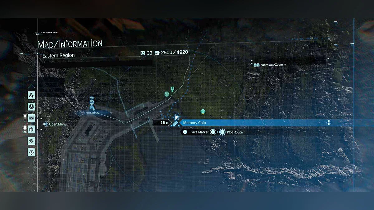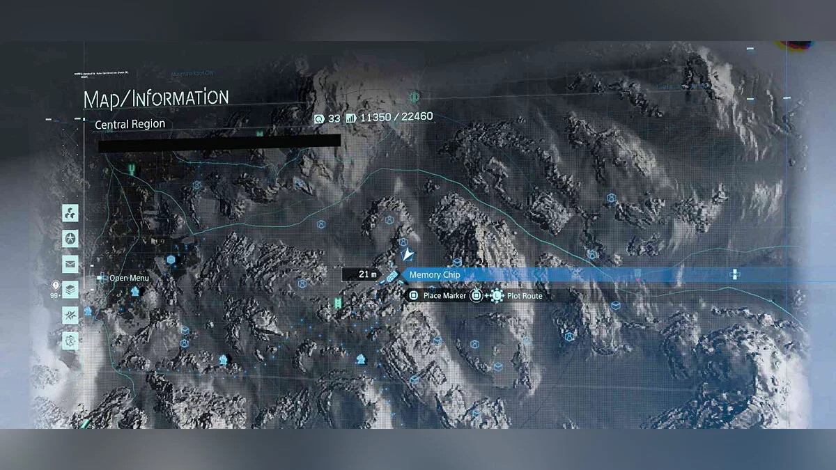 К юго-востоку от Горного узла (Mountain Knot City) находятся руины с высокими черными башнями. Карта памяти будет в руинах.