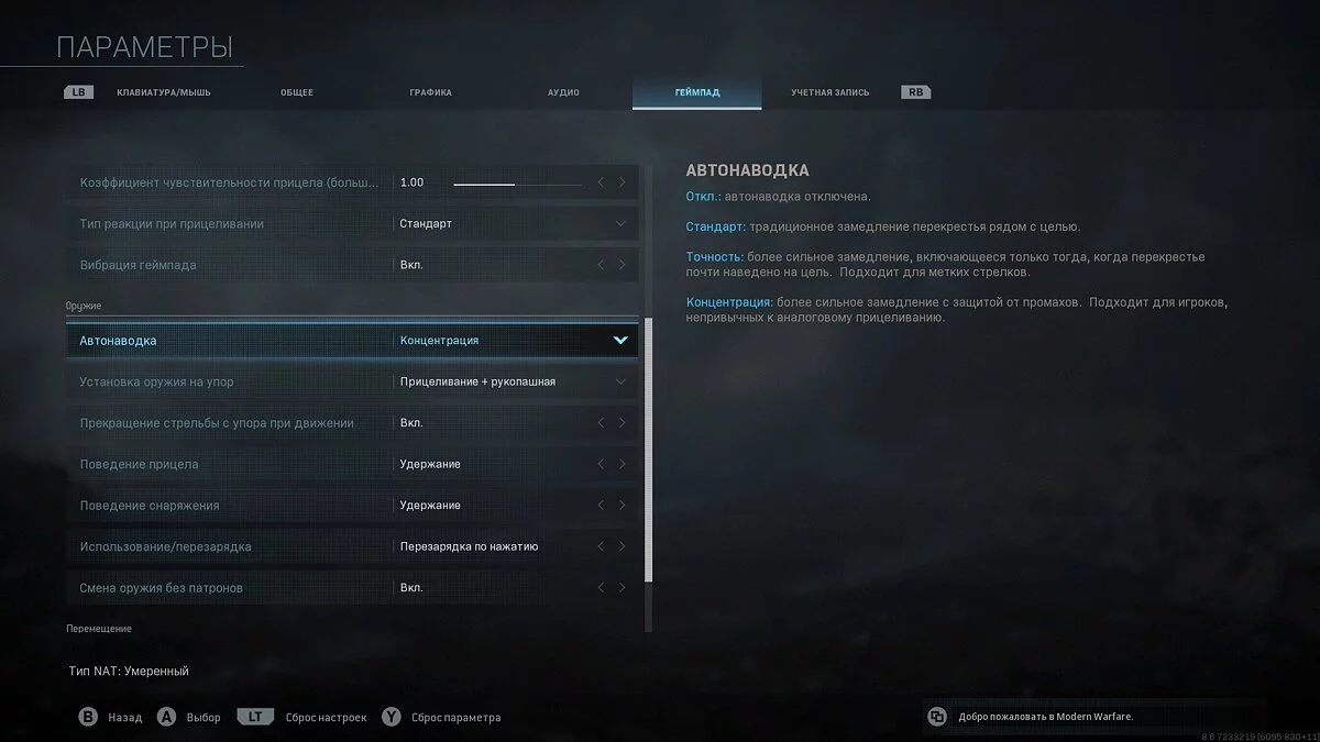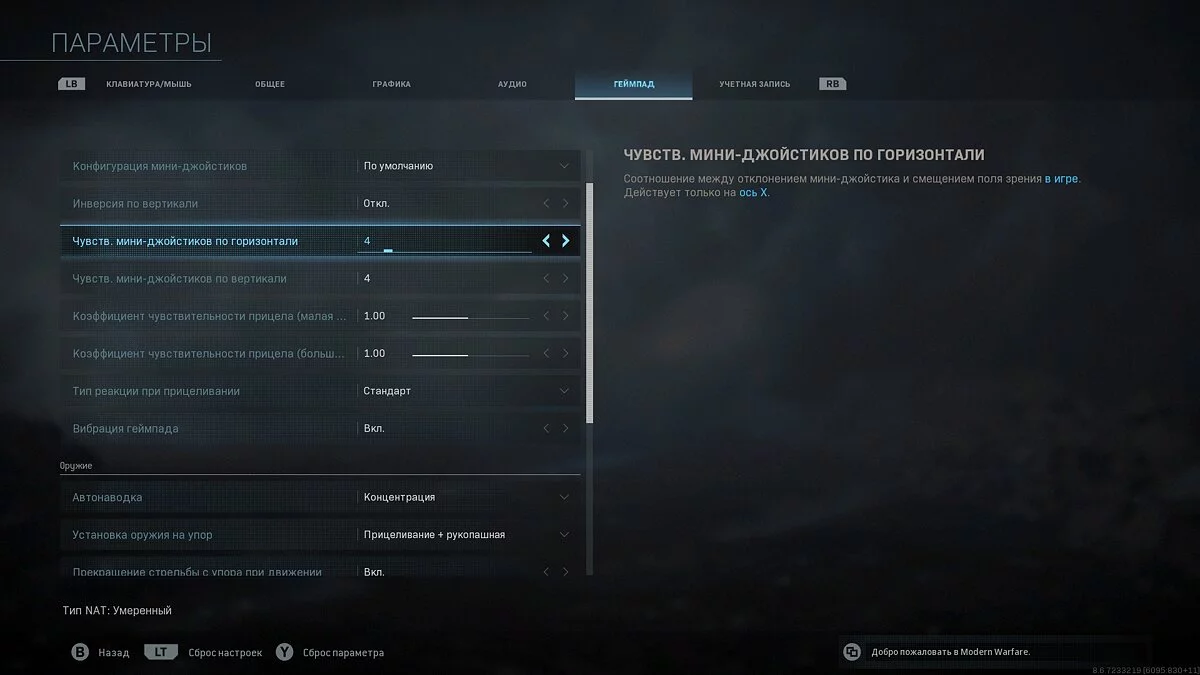 Для геймпада основные настройки — чувствительность стиков и помощь в прицеливании. В Modern Warfare эти настройки можно найти под названием «Чувств. мини-джойстиков» и «Автонаводка». Попробуйте увеличить чувствительность и проверьте, что получилось. С автонаводкой попроще, так как тут всего три варианта. Рекомендуем попробовать «Стандарт» и «Концентрация».