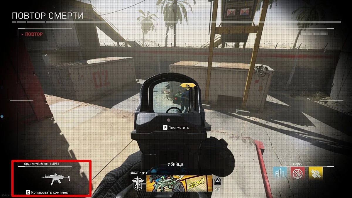 В самом начале игры, когда у вас еще мало всего открыто, хорошим вариантом может стать копирование снаряжения. Когда противник убьет вас, то во время повтора нажмите С. Вы скопируете комплект убившего вас игрока и возродитесь уже с его снаряжением. Еще это может быть полезно, если вы хотите быстро поменять стиль игры или попробовать оружие, которым вас часто убивают.