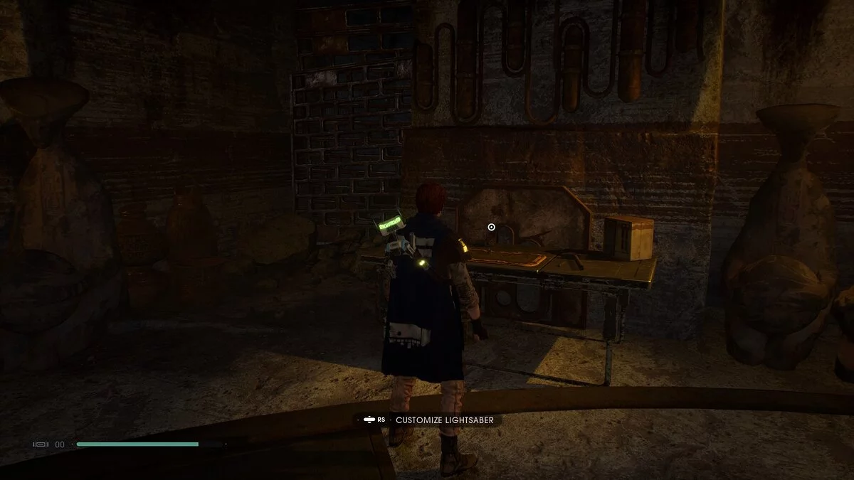 Здесь вы найдете рабочее место, с которым сможете взаимодействовать. После небольшой катсцены у вас появится световой меч.