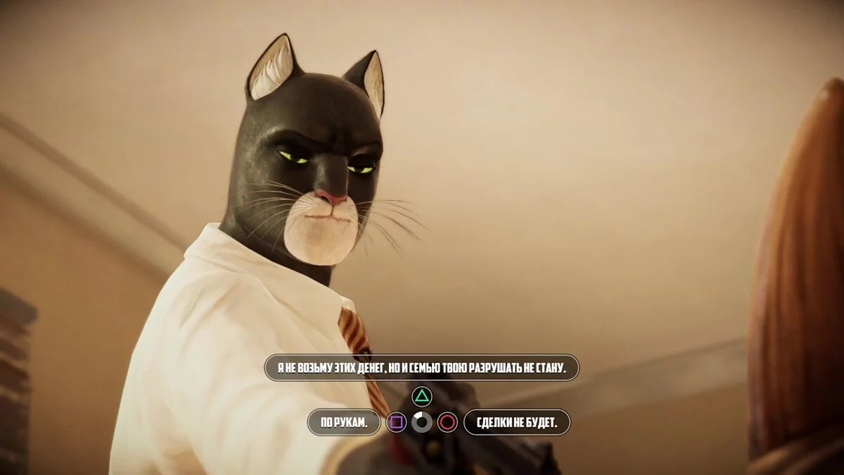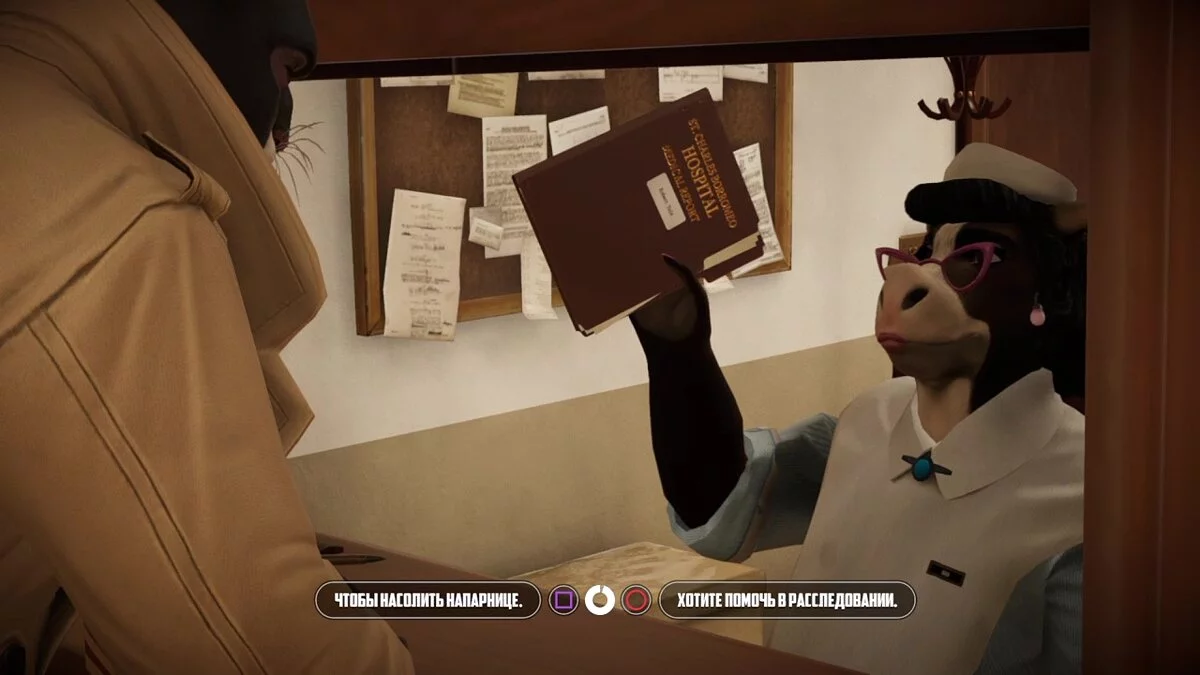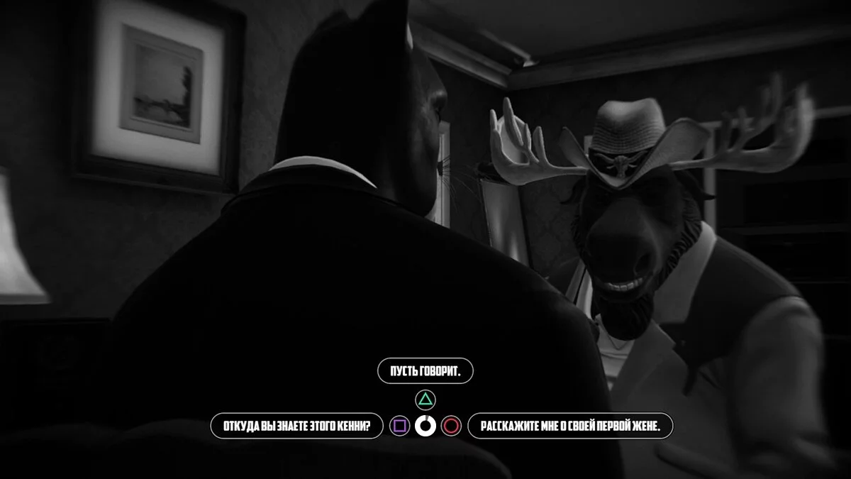 Затем выберите «Ты ирландец?» и «Я знаю Колберта и его жену». Бык уйдет позвонить боссу и оставит наедине с напарником. Благо, что Блэксэд ранее помог носорогу с женой и теперь он не станет его бить. В конце концов босс прикажет отпустить детектива.