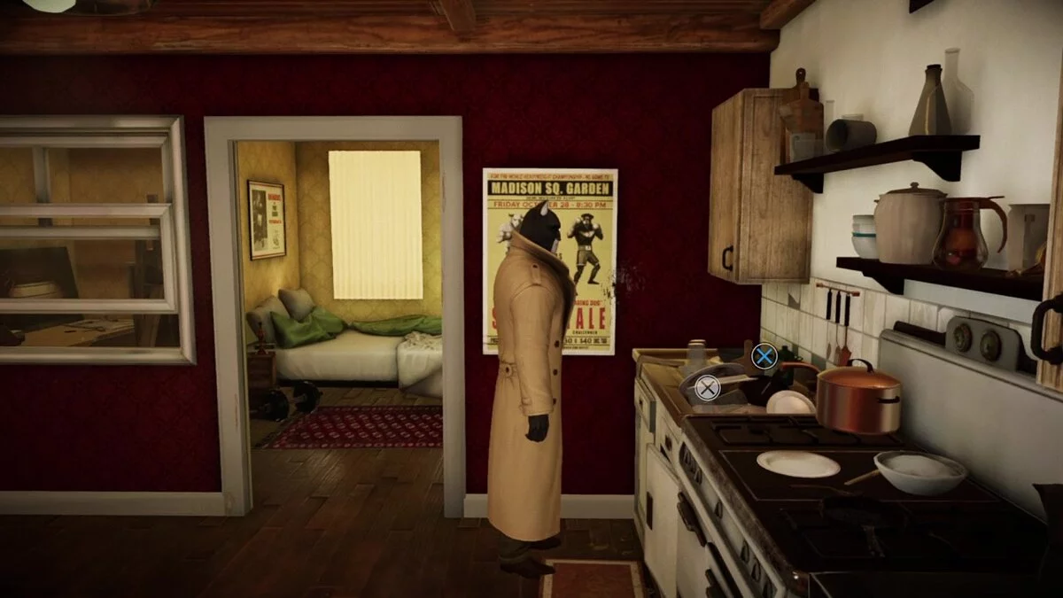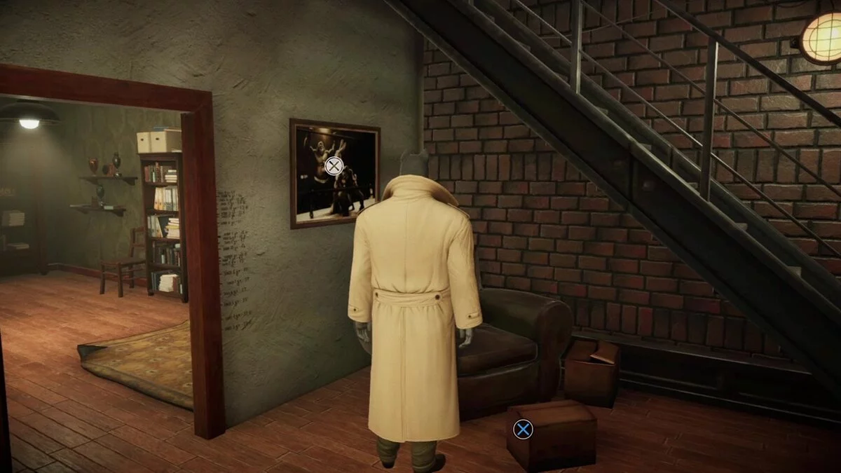Теперь, когда громилы вам не мешают, можно спокойно осмотреть квартиру. Первым делом осмотрите шарф у входа. Это одна из двух ключевых улик, необходимых для прогресса. Вторая находится неподалеку — фотография на комоде.