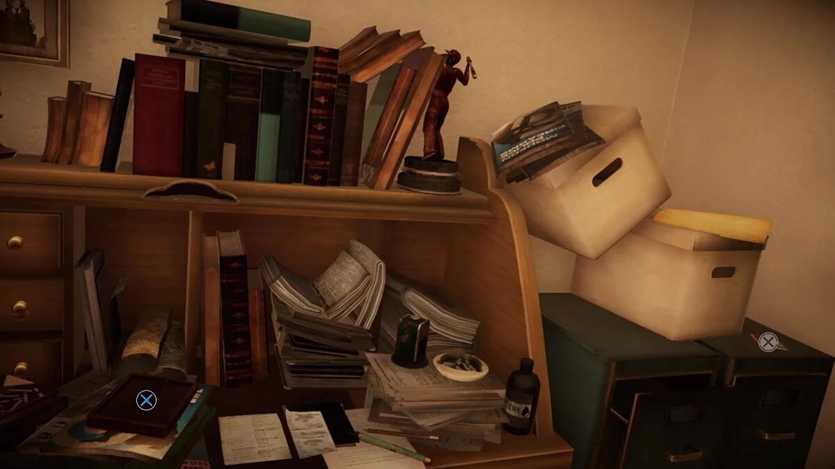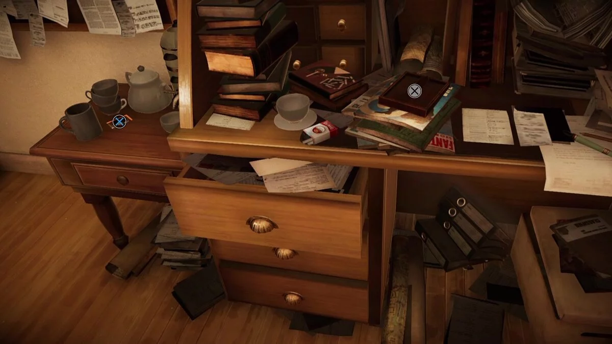 В рабочем кабинете есть много предметов, которые не важны для прохождения, но позволяют глубже вникнуть в сюжет. Это, например, оба окна и военные фотографии на стене.