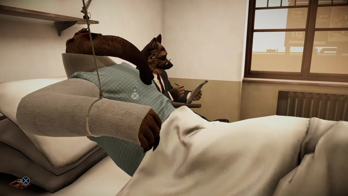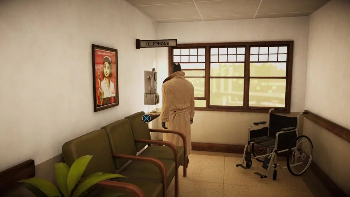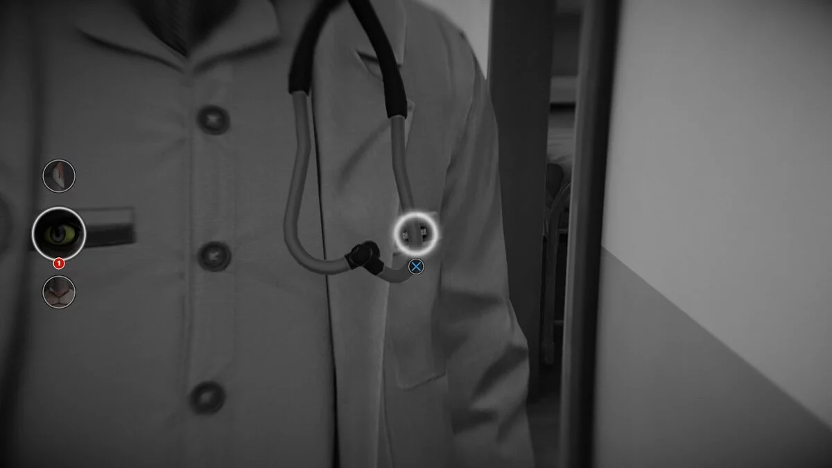 После этого еще раз осмотрите его в режиме детектива, чтобы проверить состояние Бобби и активировать возможность позвать медсестру. Однако, прежде чем двигаться дальше по сюжету, соберите все наклейки, которые есть в кардиологическом отделении. Посмотрите на подоконник, чтобы найти первую наклейку. Выходите из палаты.