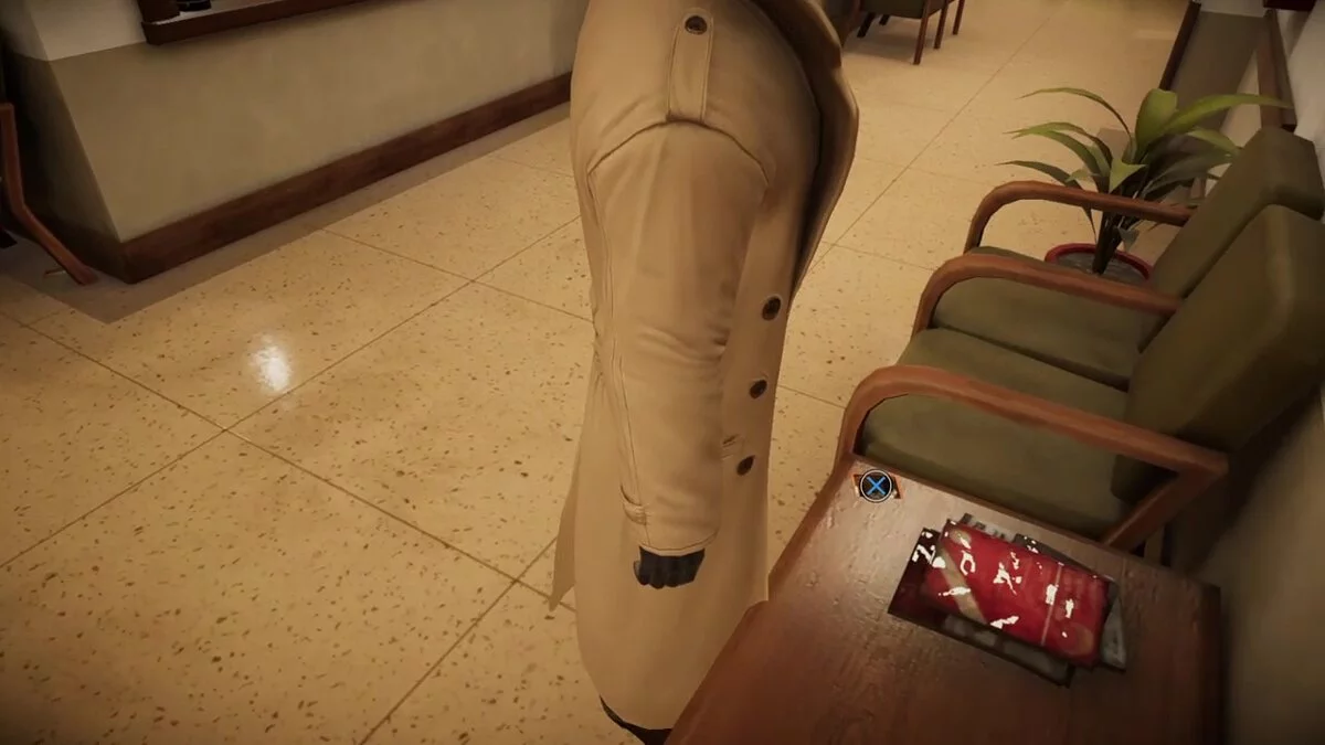 В парикмахерской на все вопросы стоит отвечать «Попытаться вспомнить». Остальные варианты ведут к смерти. В этот момент вы будете возвращаться в номер отеля и искать подсказки за ограниченное время. Кроме того, за то короткое время, что дается на исследование комнаты можно найти еще и две наклейки. В чемодане Фарнхэма и в ванной на раковине.