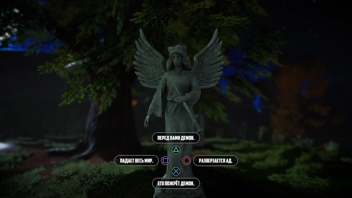 Кроме того, осмотрите статую ангела и ответьте «Перед вами демон», чтобы получить достижение «Стоит ангелу пасть…».
