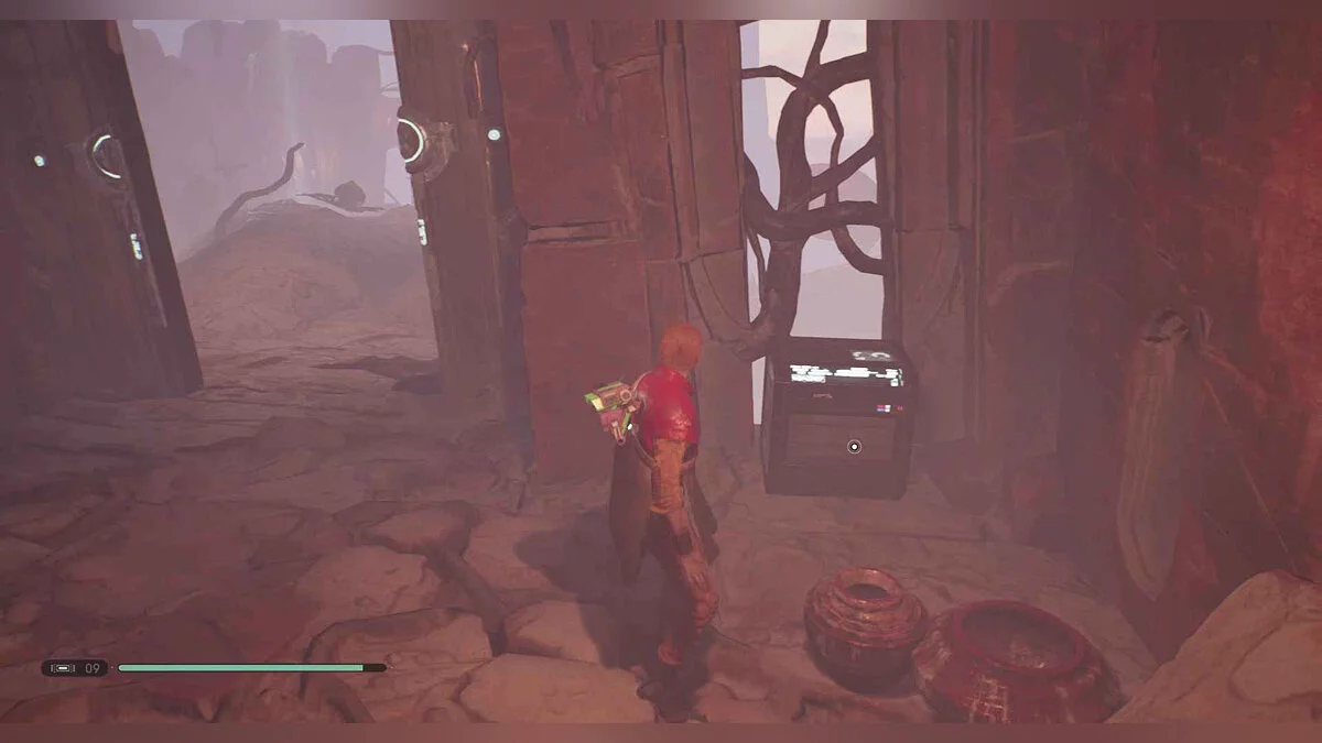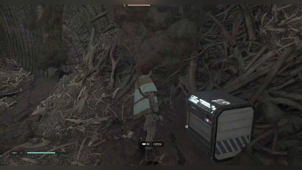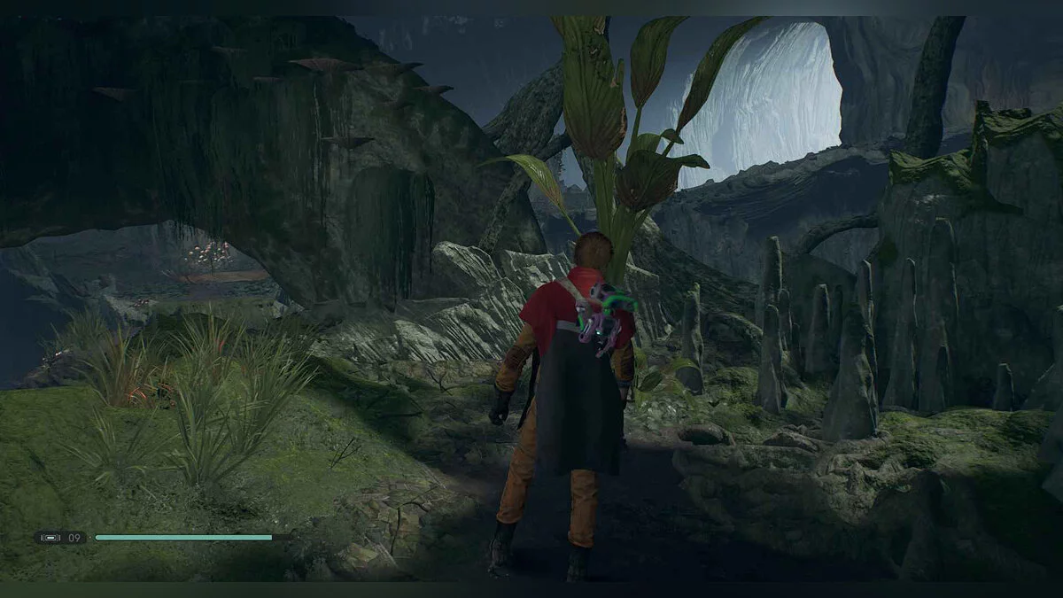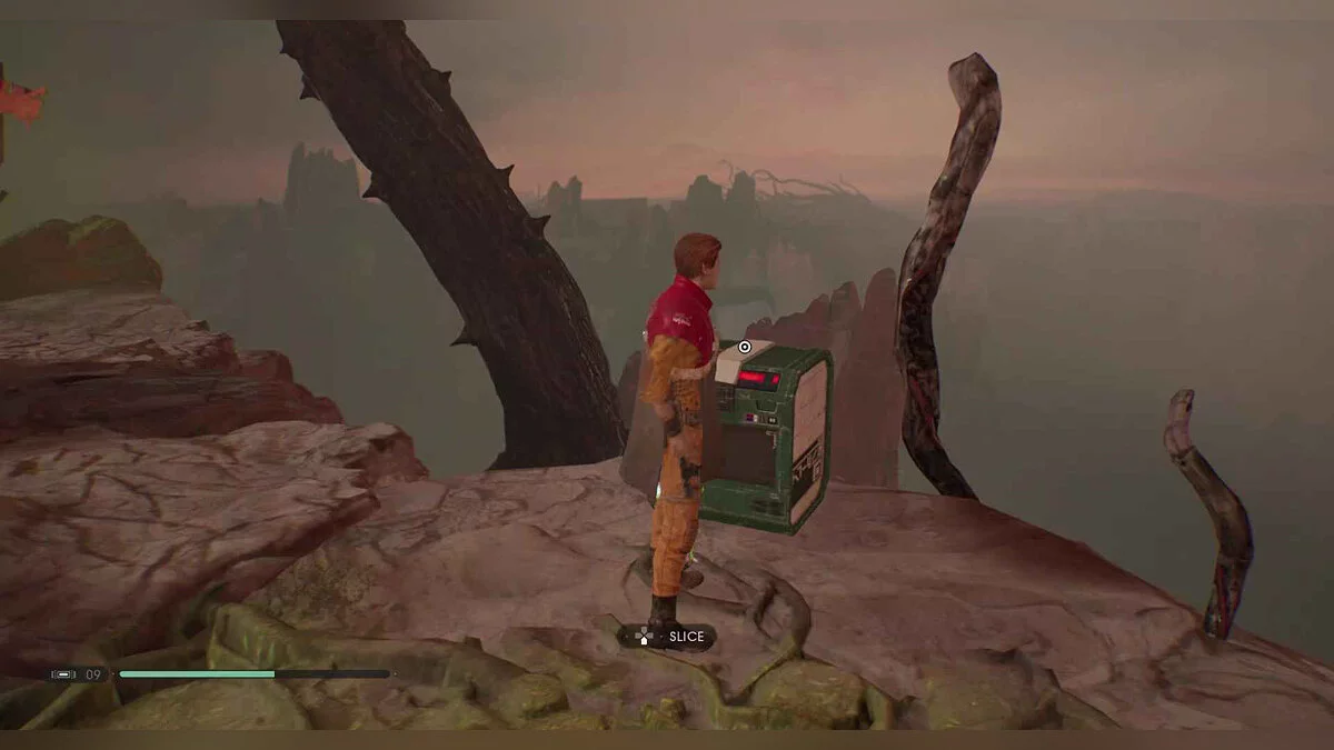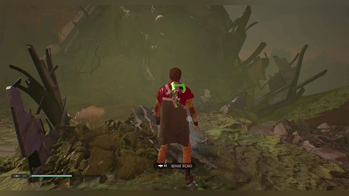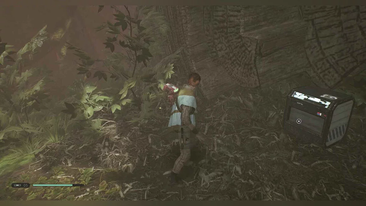 Отзвук Силы #88 — The Stranger — 8. Power Struggle — от точки медитации в рухнувшем поселении пройдите в комнату с подвесными растениями и посмотрите налево. используйте Силу, чтобы потянуть ворота, перепрыгните, в затем взбирайтесь на лозы. Повернитесь и пройдите мимо стручков, чтобы найти предмет.
