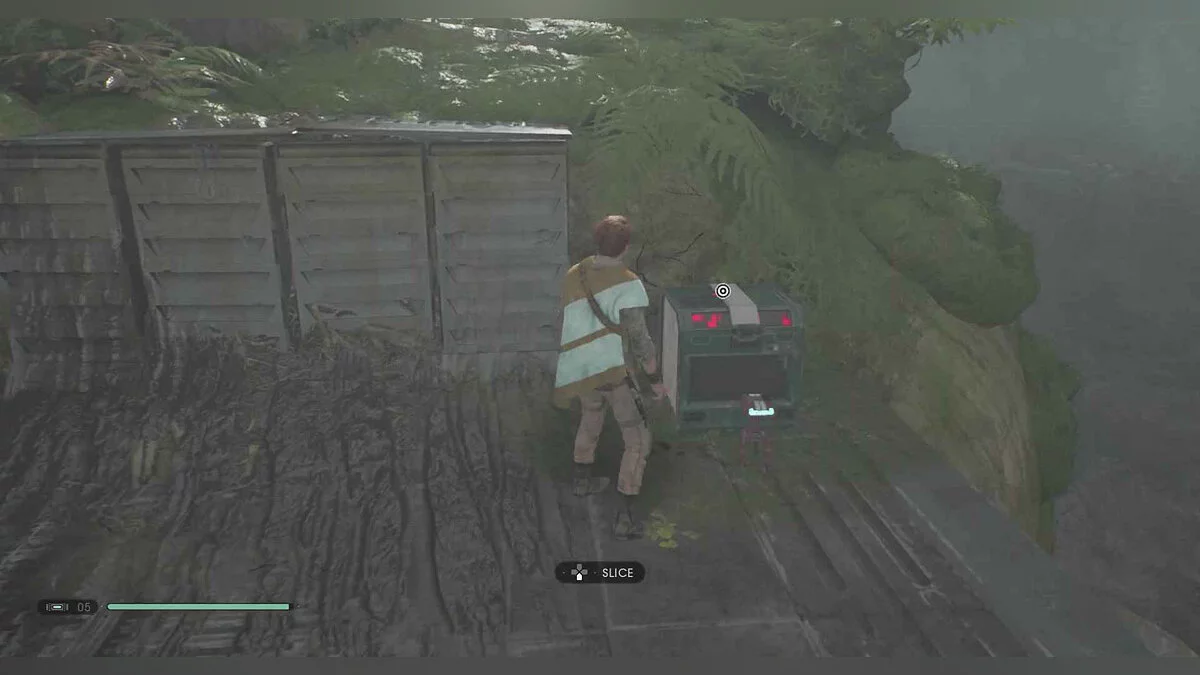 Отзвук Силы #90 — The Stranger — 9. Submission — в области с большим деревом, опустите платформу вниз, затем поверните на себя и бегите через стену, чтобы приземлиться на небольшой выступ с предметом наверху.