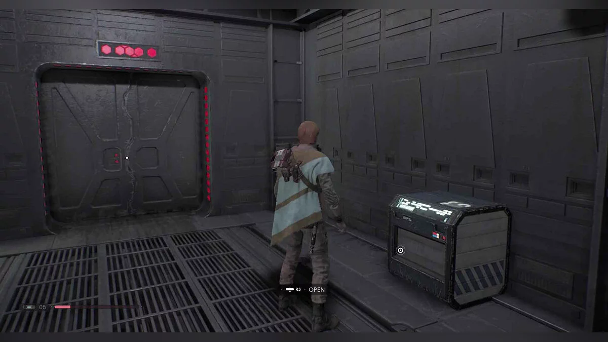 Ящик #63 — Материал (Lightsaber Material) (Matte) — как только вы войдете в комнату с противниками, оставайтесь на верхнем уровне и используйте панель, чтобы открыть дверь справа.