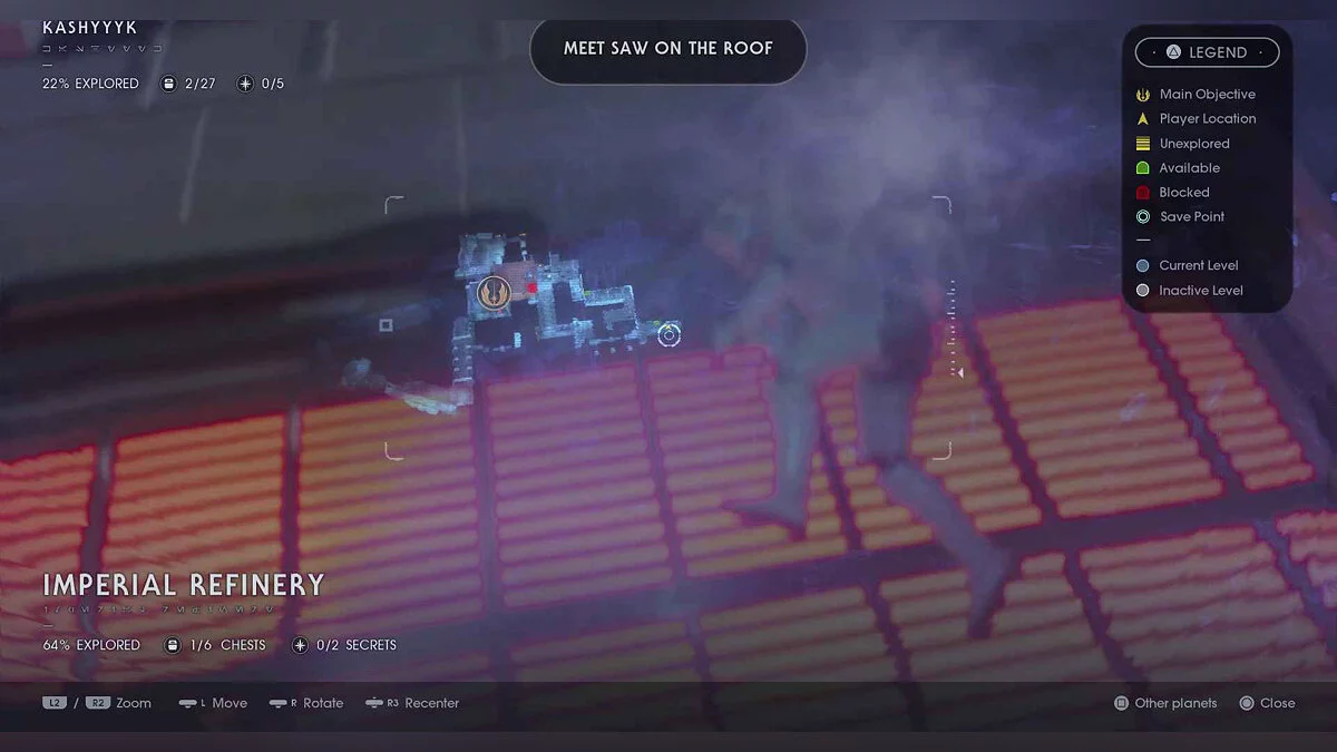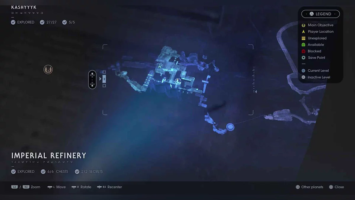 Отзвук Силы #70 — Imperial Occupation — 11. Refinery Expansion (Секрет #24) — вернитесь к вершине стены, на которую можно пройти, и продолжайте движение прямо, пока в конечном итоге вы не достигнете этого предмета.