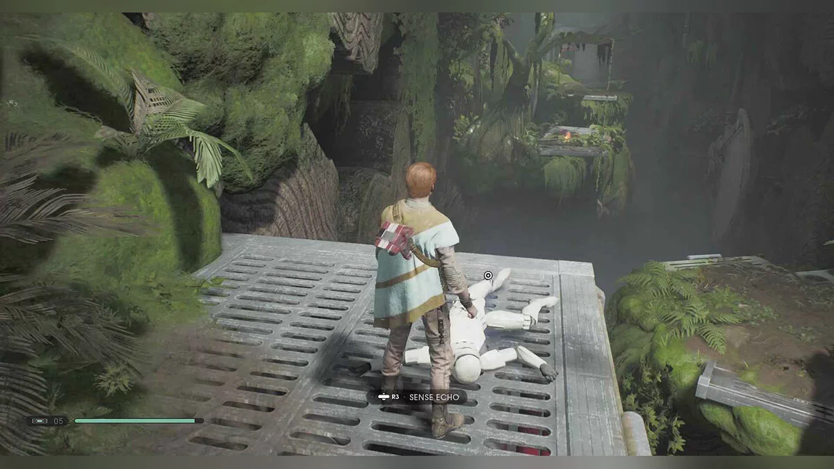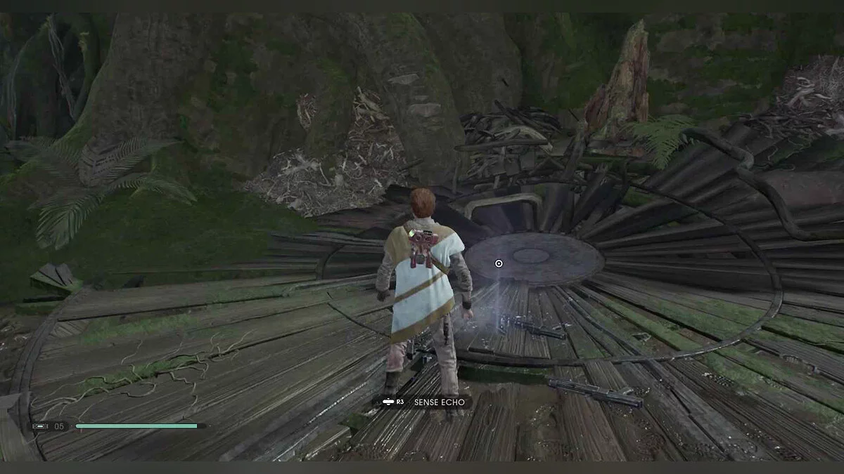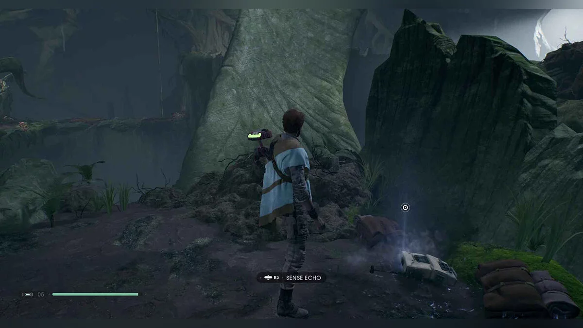 Отзвук Силы #76 — Insurgent Activity — 2. Rescue — вернитесь к точке медитации, бегите по стене к платформе, поверните налево и используйте растение, чтобы прыгнуть на другой остров с этим предметом на деревянном колесе.