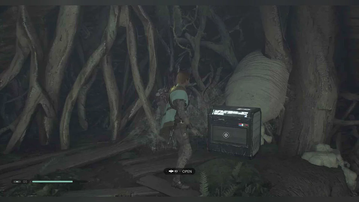 Ящик #69 — Муфта (Lightsaber Sleeve) (Passion and Strength II) — после того, как веревка переместится в эту область и скатится по грязевой дорожке, войдите в комнату справа, чтобы найти этот сундук.
