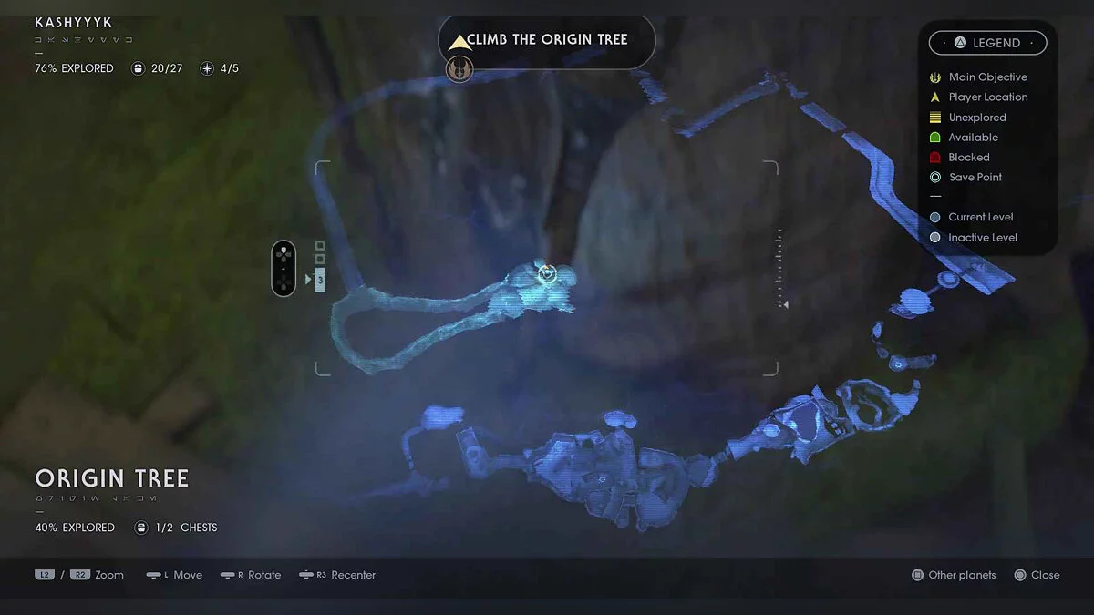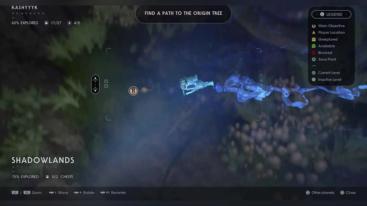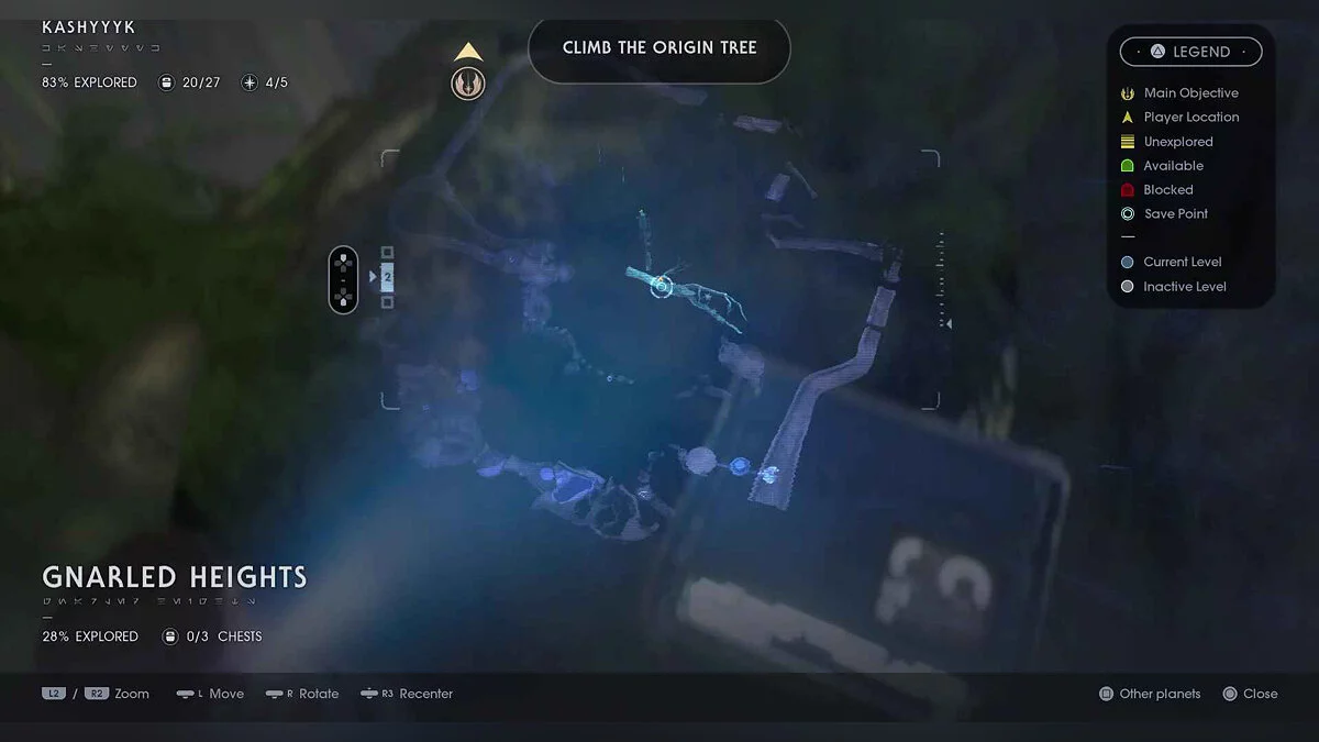 Отзвук Силы #73 — Wookiee Culture — 3. Sacred Shadowlands — все еще на этой расходящейся дорожке, поднимайтесь вверх и вокруг, пока вам не придется прыгать через три последовательных челюстных растения. Эхо на платформе.