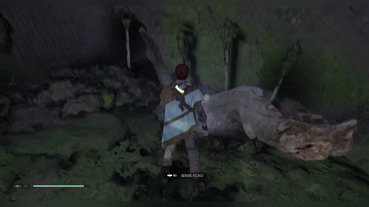 Отзвук Силы #98 — The Nightbrothers — 3. Rite of Passage — после борьбы со зверем, поднимитесь на длинную стену. После протискивания через узкую щель будет видно предмет на платформе слева.