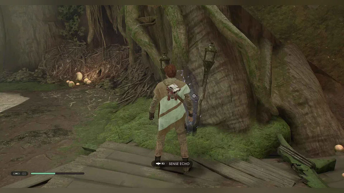 Отзвук Силы #87 — The Stranger — 11. Temptation (Секрет #27) — после верстака, на котором вы сделали свой двусторонний световой меч, продолжайте следовать по линейной траектории и взбирайтесь по лозам, пока не дойдете до выступа, где вы найдете это улучшение жизни.