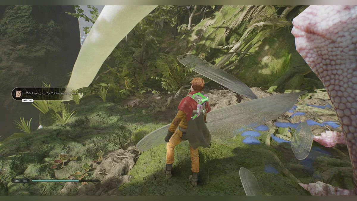 Отзвук Силы #81 — Wookiee Culture — 9. Tarfful and Cordova — в конце концов вы доберетесь до платформы, где в сюжете появляется птица, и Кэл замечает, что ей больно. Слева будет предмет.