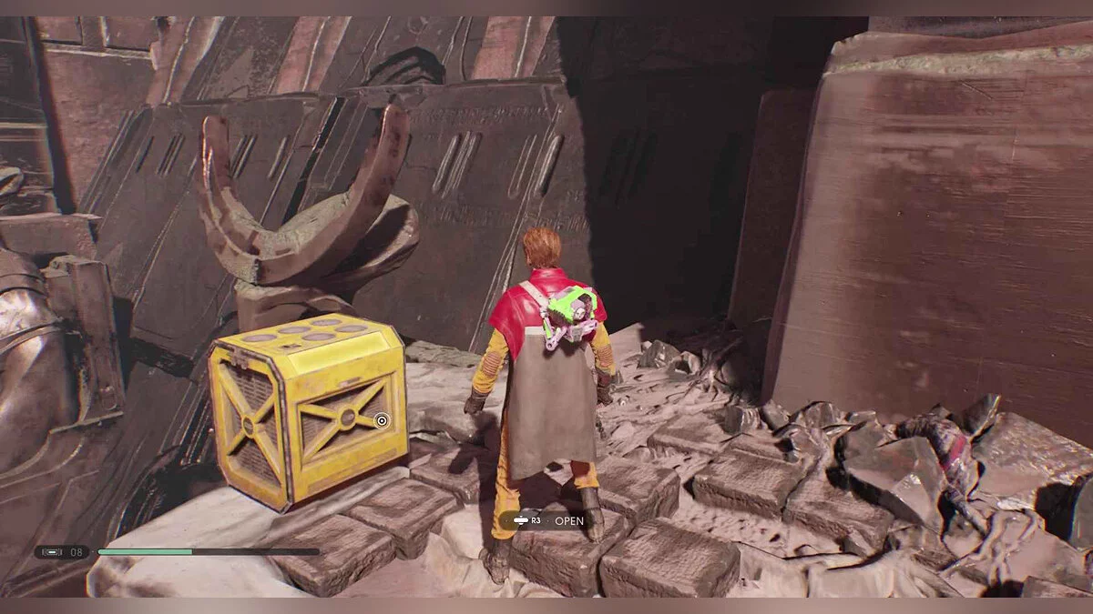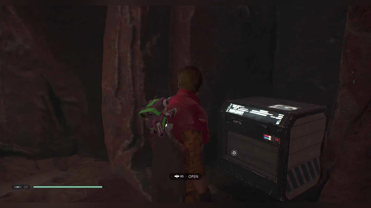 Ящик #97 — Материал (Lightsaber Material) (Dolovite) — перейдите на другую сторону подземелья и поверните налево на развилке, чтобы увидеть предмет в нише.