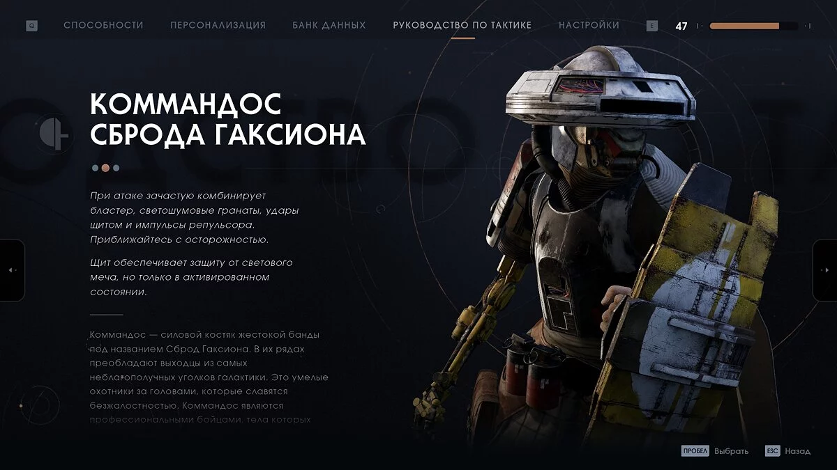 А вот коммандос и дроид-охотник куда больше раздражают в сравнении с обычным охотником за головами, поскольку они любят резко бежать в вашу сторону со щитом (коммандос) или без него (дроид-охотник). Обе эти атаки, как несложно догадаться, неблокируемые.