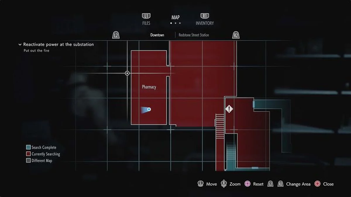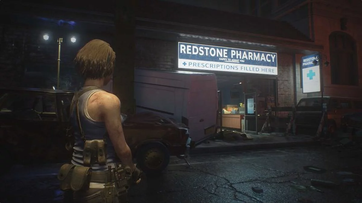 Проходим через здание и выходим на улицу на другой стороне. Находим аптеку Редстоун (Redstone Pharmacy) — она находится справа от железнодорожной станции (Kite Bros Railway).
