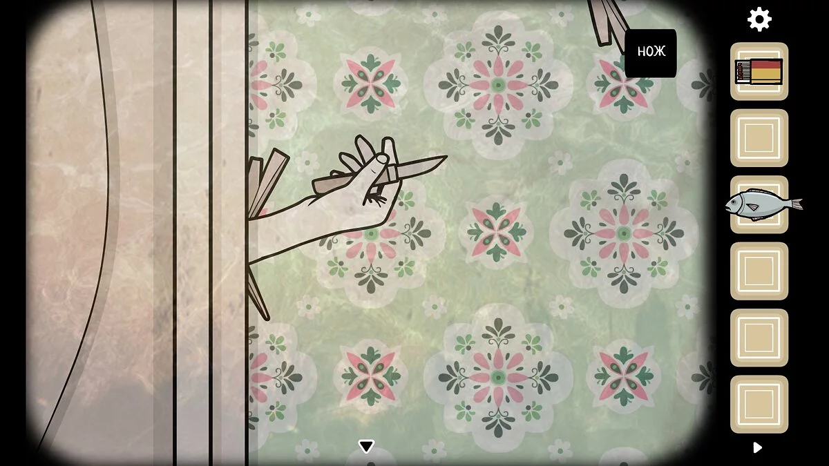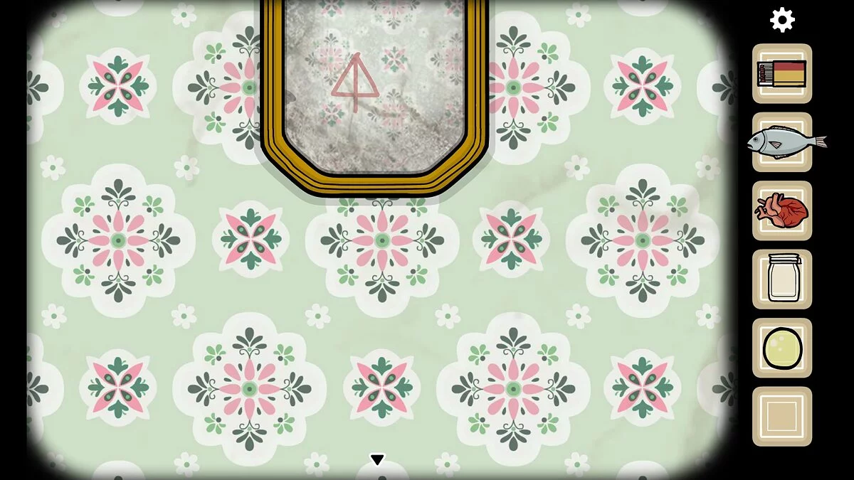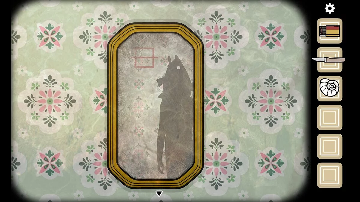 8. Вы окажетесь в похожей, но немного другой комнате. В зеркале вы увидите отражение человека с рыбьей головой. Над зеркалом заберите ракушку. Также прокрутите отражение, чтобы найти еще один символ.