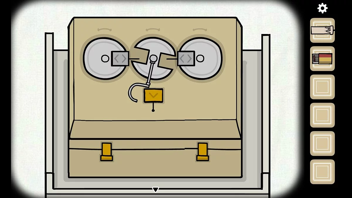 2. Поверните влево. Здесь нужно решить простенький пазл с чемоданчиком. Поверните механизм, чтобы высвободить рычажок, открывающий чемодан. Возьмите вторую свечу.
