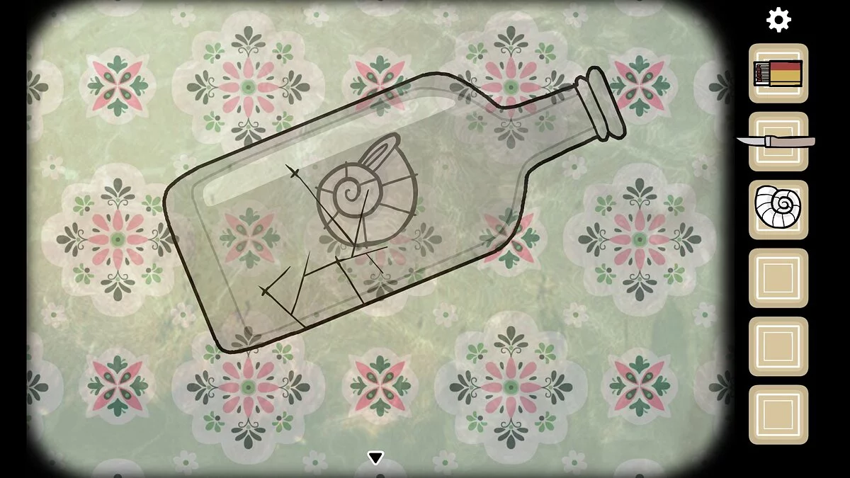13. Теперь снова пройдите вправо. Осмотрите бутылку. Нужно кликать на местах с трещиной в виде Х. Продолжайте пока она не разобьется. Заберите ракушку.