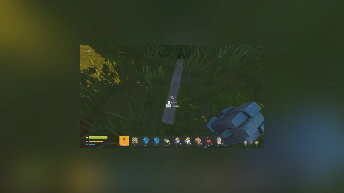 Далее нажмите Е, чтобы переработать ресурс и получить блоки. Позднее вы сможете ускорить этот процесс, как только получите пилу (sawblade), собиратель ресурсов (Resource Collector) и бота-переработчика (Refinery Bot).