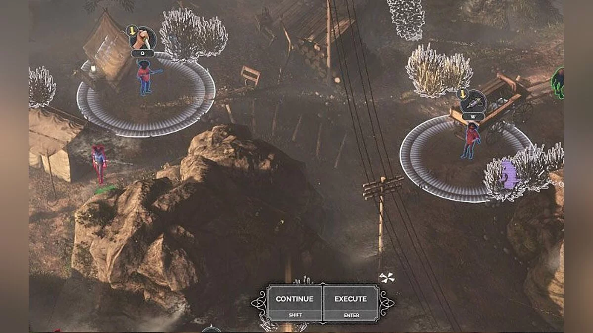 Напомним, что режим Showdown (по умолчанию — клавиша Shift) в Desperados 3 позволяет раздавать персонажам приказы в режиме некой паузы, чтобы расправиться с врагами, не поднимая тревоги. Режим Showdown можно использовать для грамотного планирования действий одного героя, а еще лучше, 2 или более игровых персонажей.