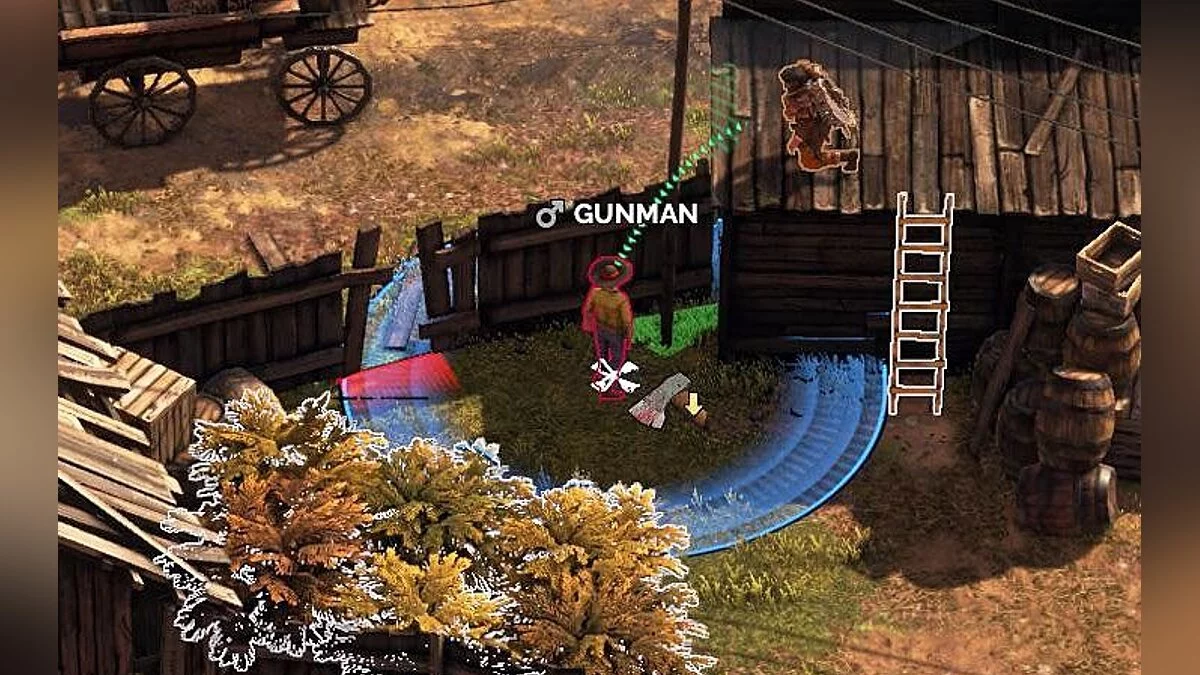 Одна из механик в Desperados 3 работает так, что когда вы находитесь выше своих противников, вас сложнее обнаружить, даже если подобраться совсем близко. Однако, ваш персонаж обязательно должен передвигаться полуприсяде. Вы можете оказаться выше своих противников, находя различные лестницы, забираясь по стенам с плющом или забираясь на крыши или балконы зданий. Также, сверху можно эффектно и быстро устранить противника, спрыгнув на него, аки Ассасин.