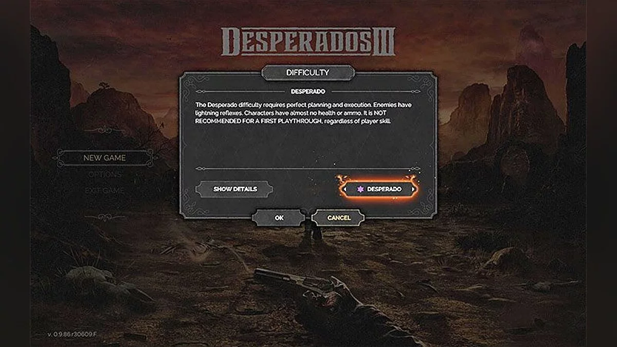 В игре Desperados 3 доступны четыре уровня сложности — низкий, средний, высокий и очень высокий (Desperado). При первом прохождении, советуем выбрать средний или высокий уровень сложности. Нормальный уровень сложности будет лучшим выбором, если вы никогда не играли в предыдущие части Desperados или другие игры от Mimimi studios — Shadow Tactics.