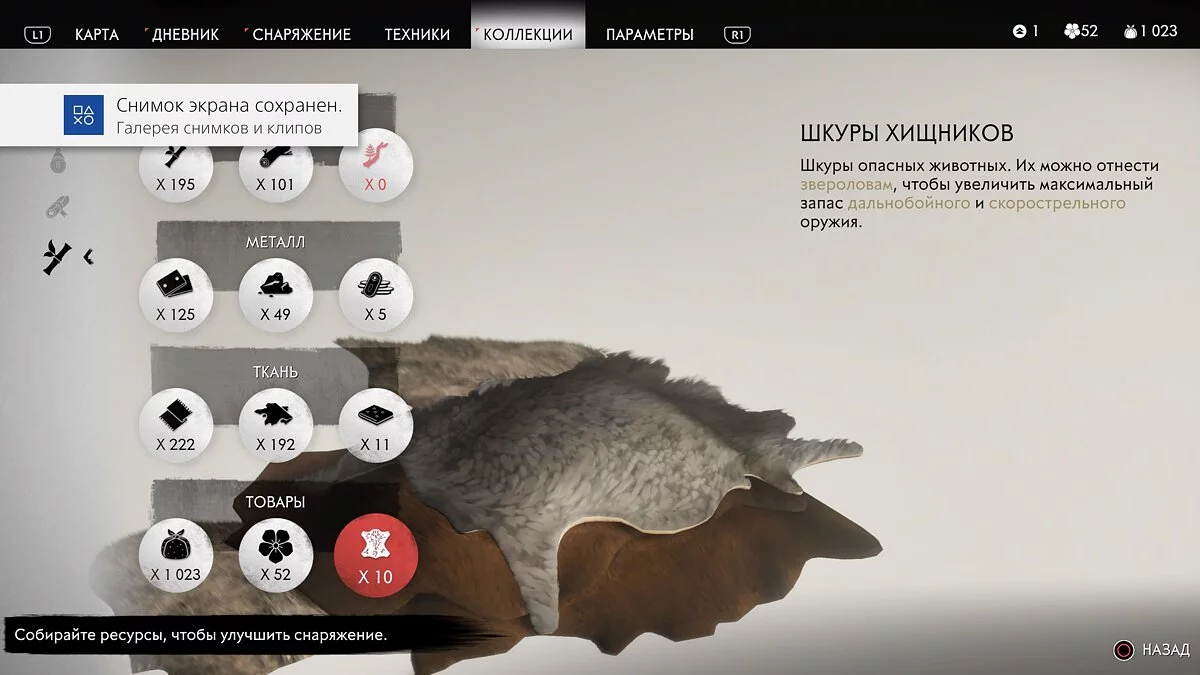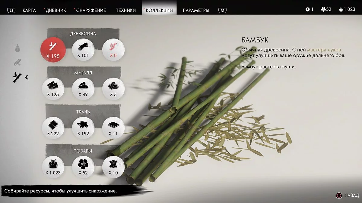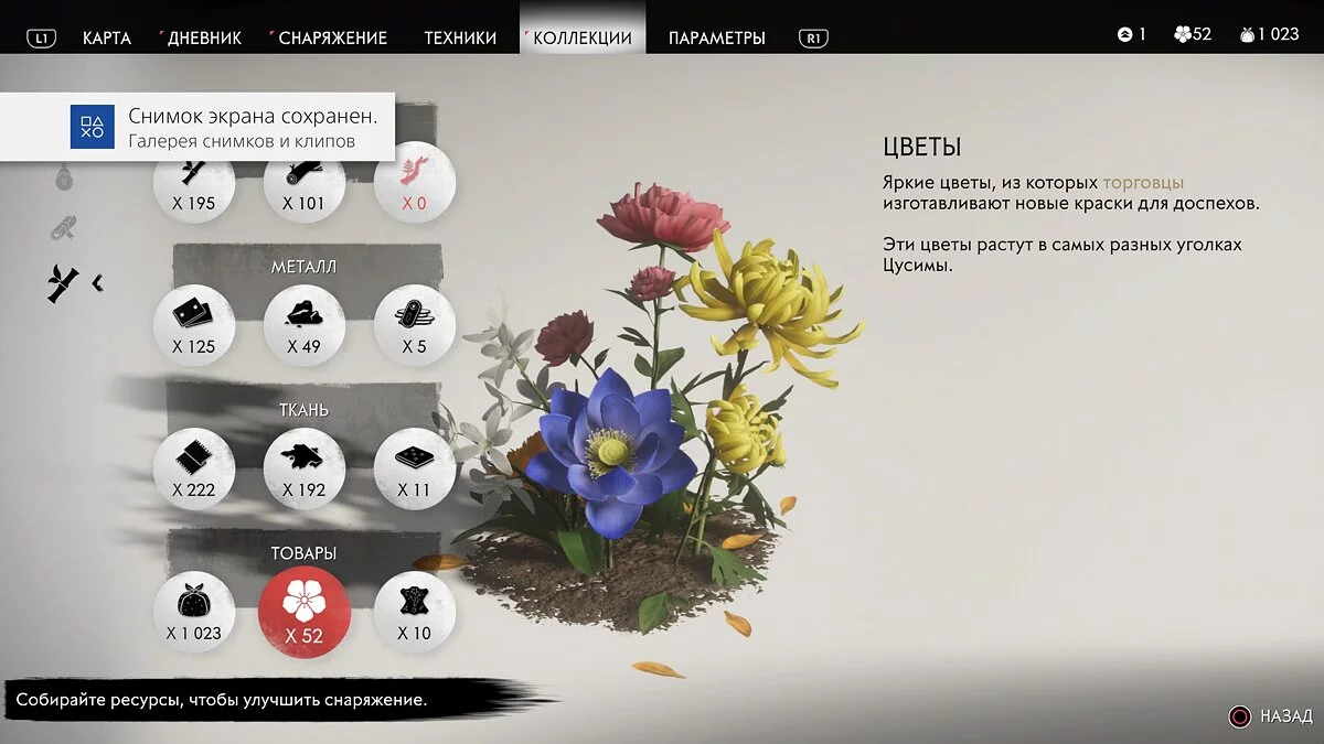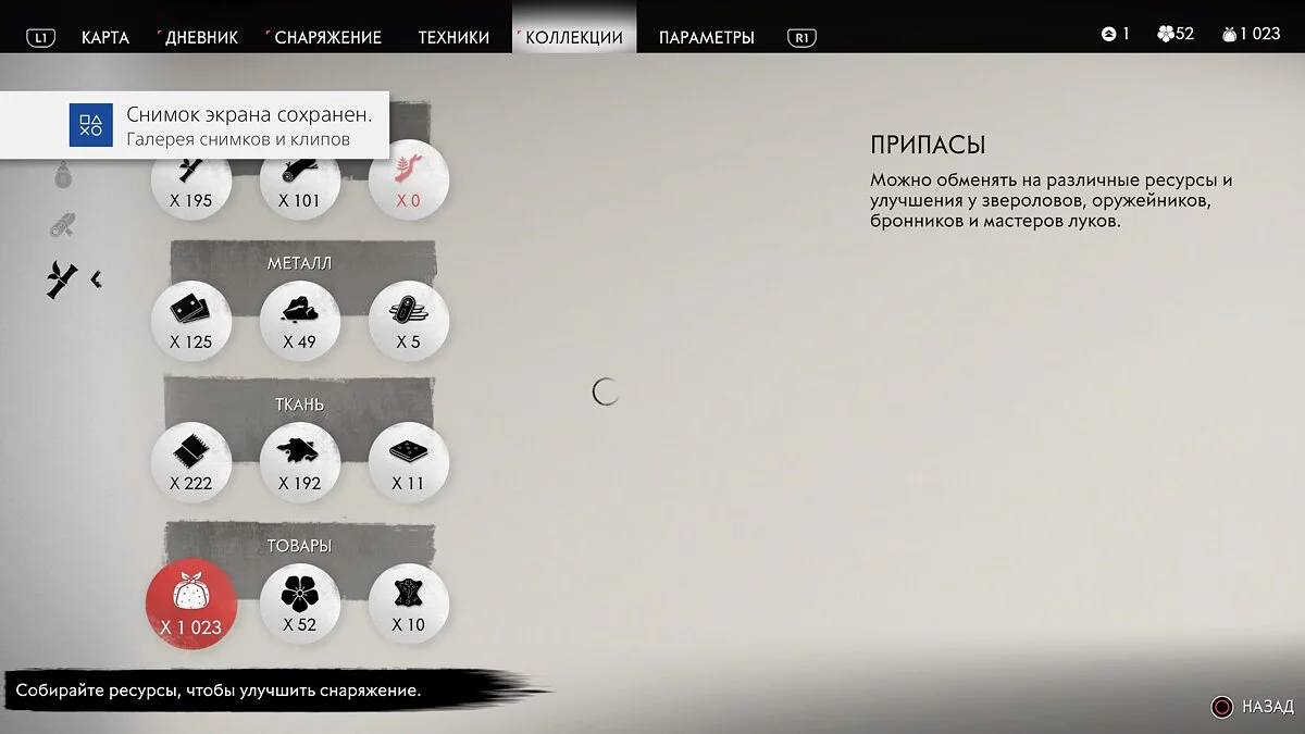Помимо апгрейда снаряжения в Ghost of Tsushima можно изменять внешний вид предметов и расширять количество переносимых вещей (стрелы, бомбы, кунай и т.д.). В первом случае вам понадобится торговец. В качестве оплаты он принимает цветы (их можно собирать при исследовании открытого мира). Расширить количество переносимых предметов может зверолов. Он принимает шкуры опасных хищников (кабаны или медведи). Также зверолову можно продать ненужные предметы.