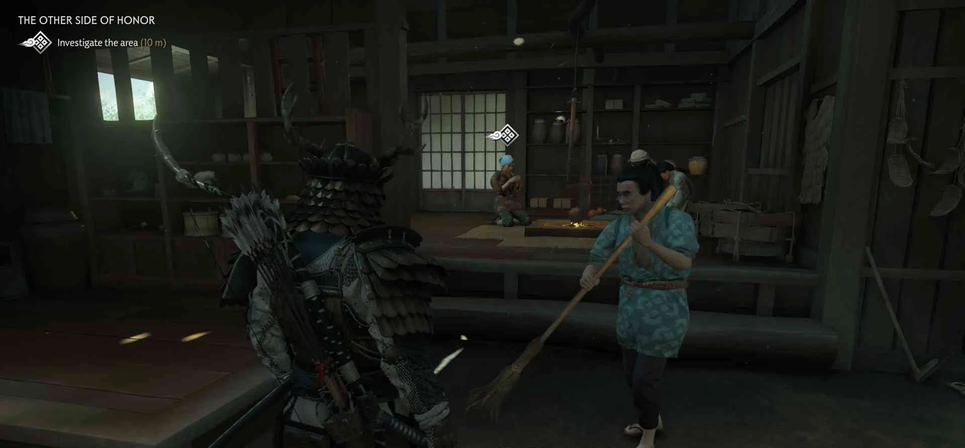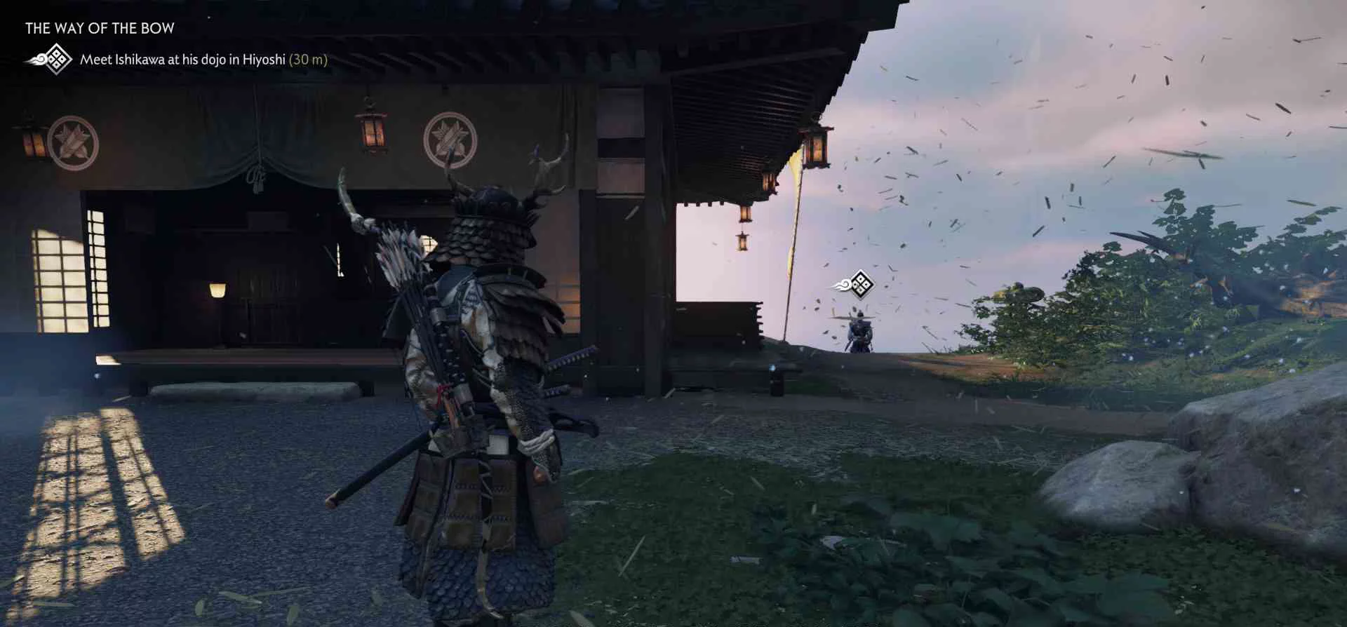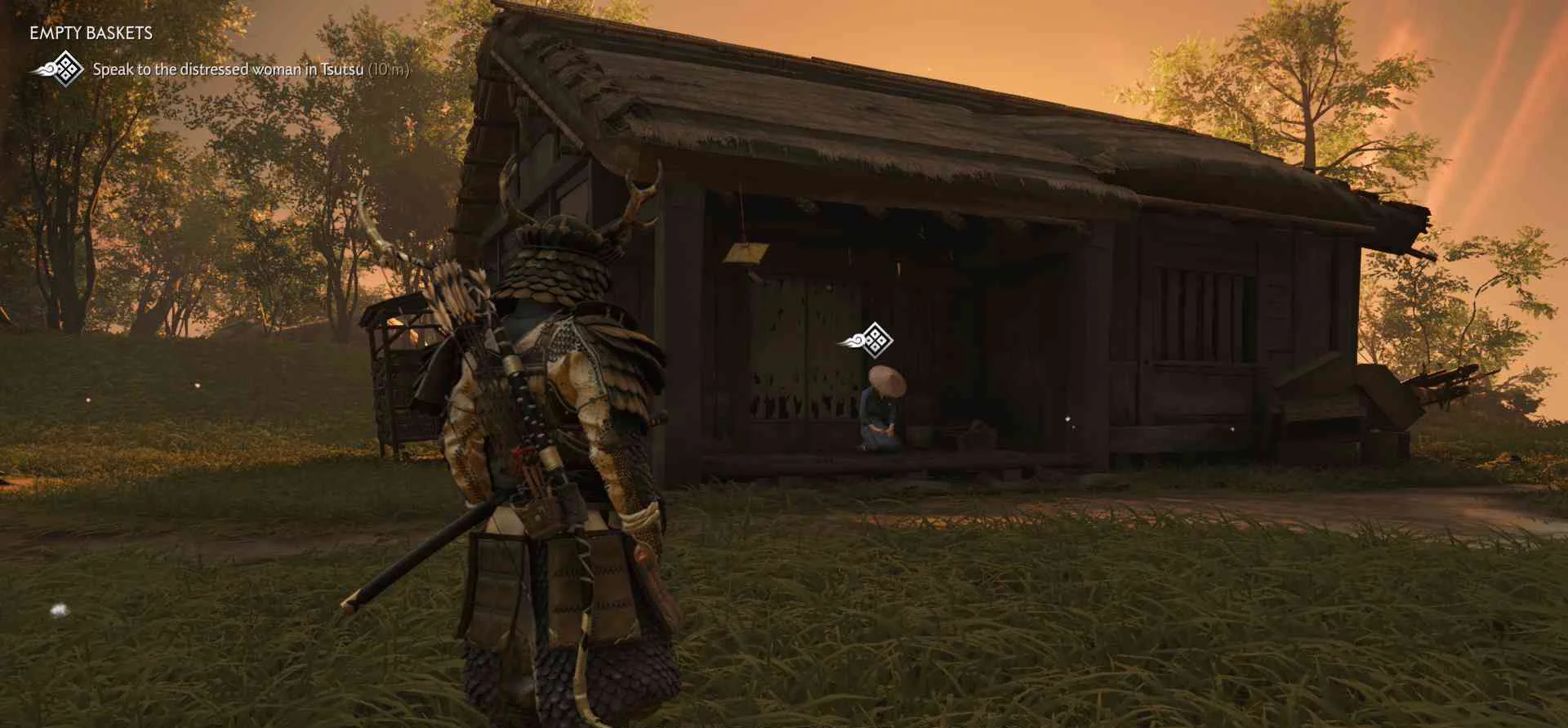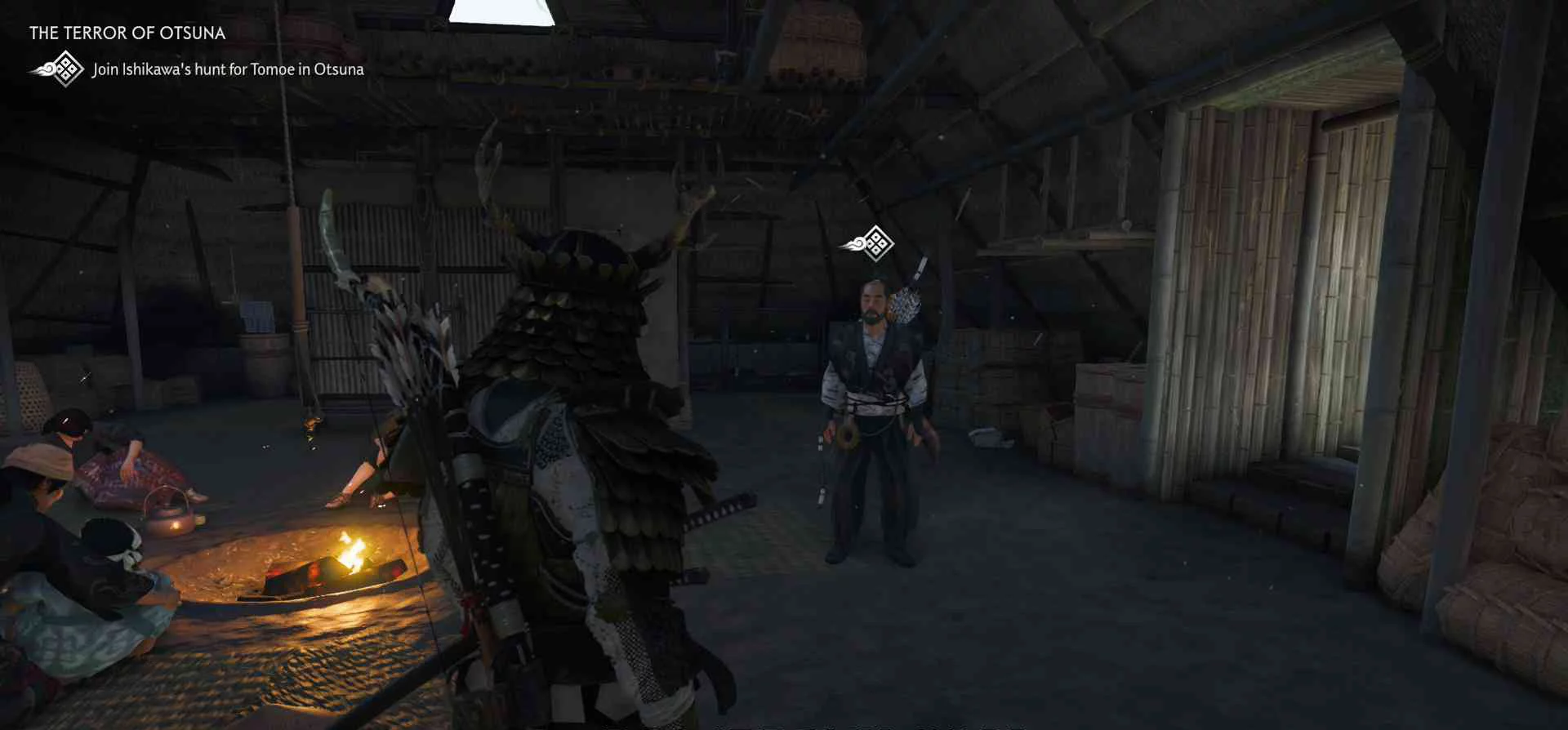 Сэнсэй Исикава планирует укрыться в соседнем крестьянском доме. Нужно поговорить с сенсеем об охоте на Томоэ.