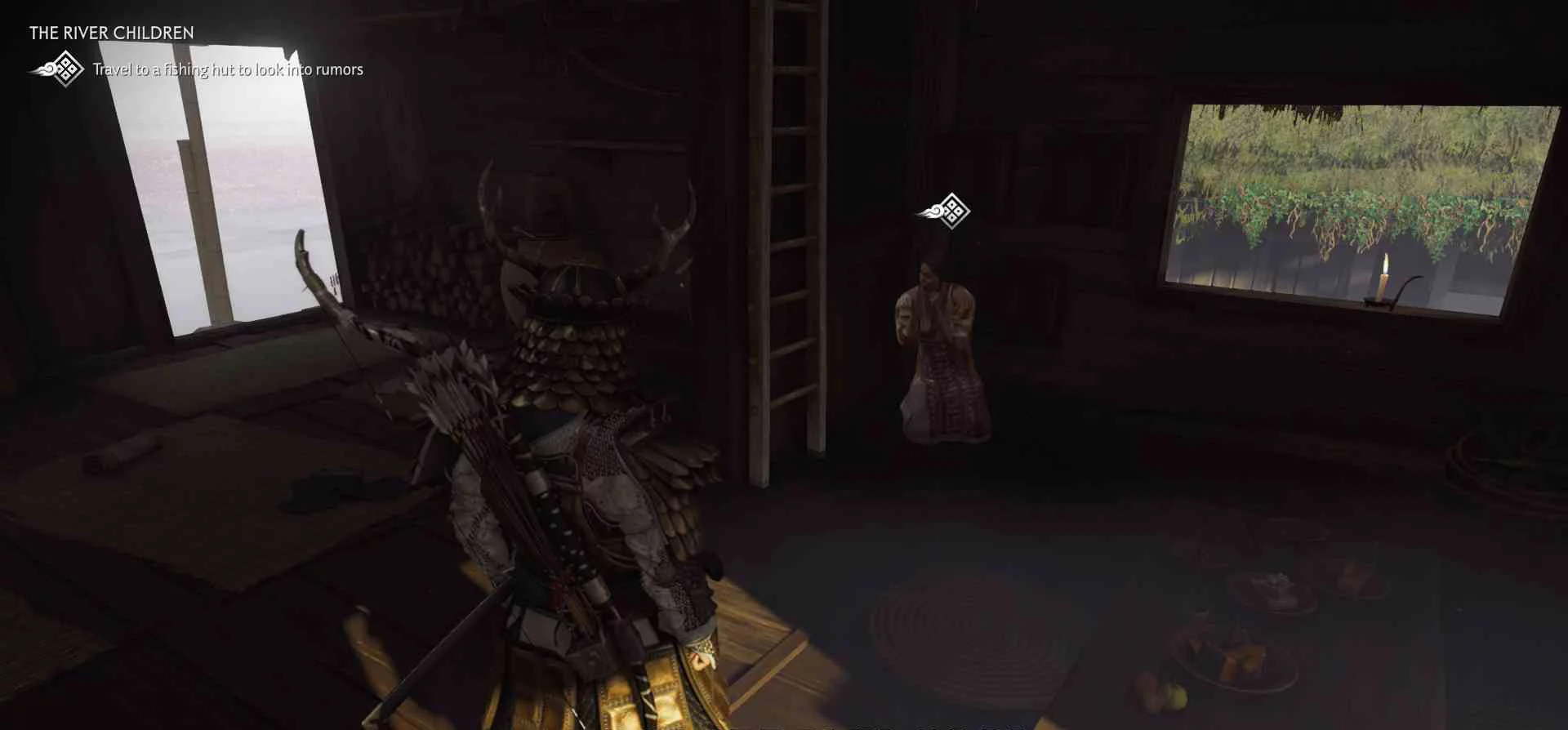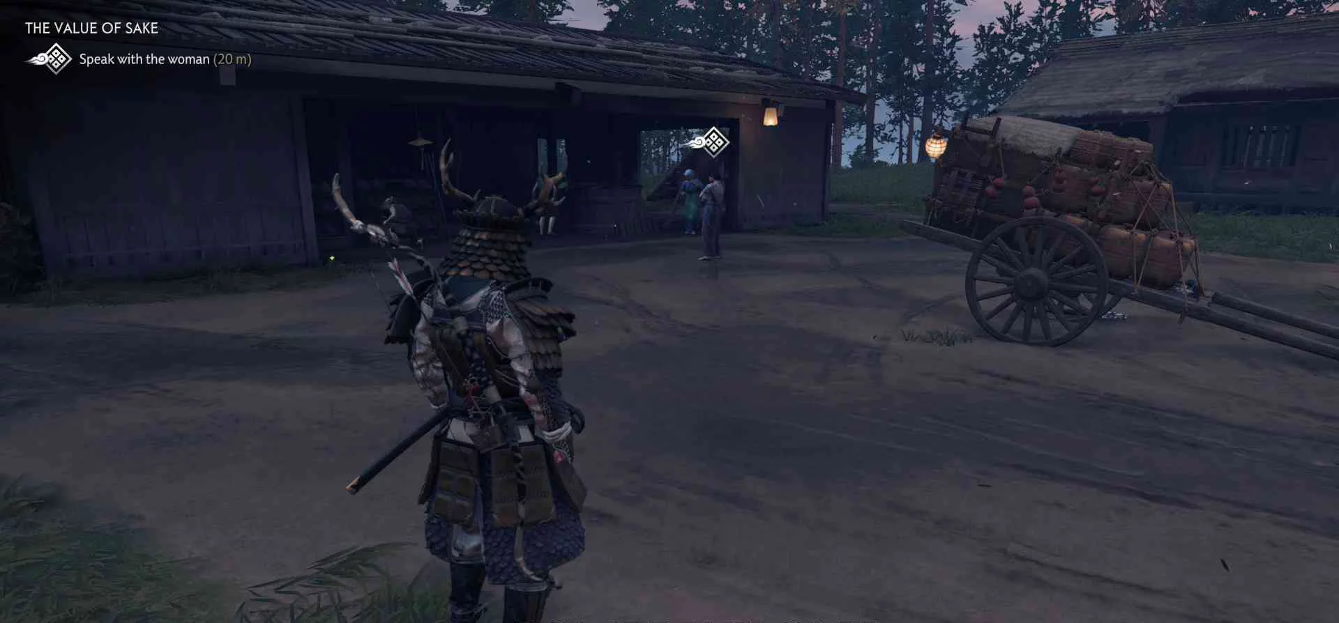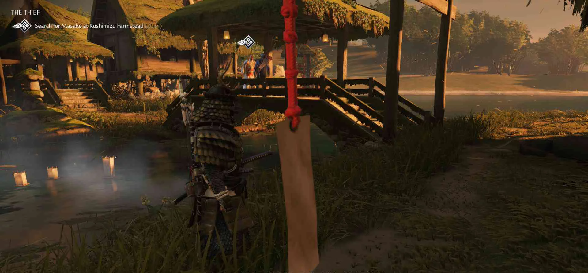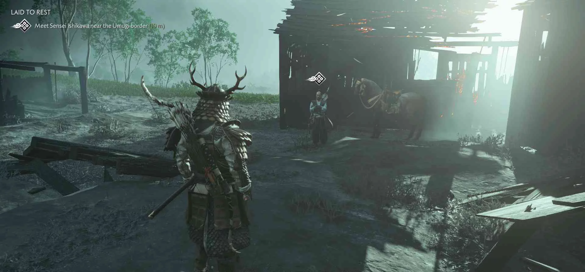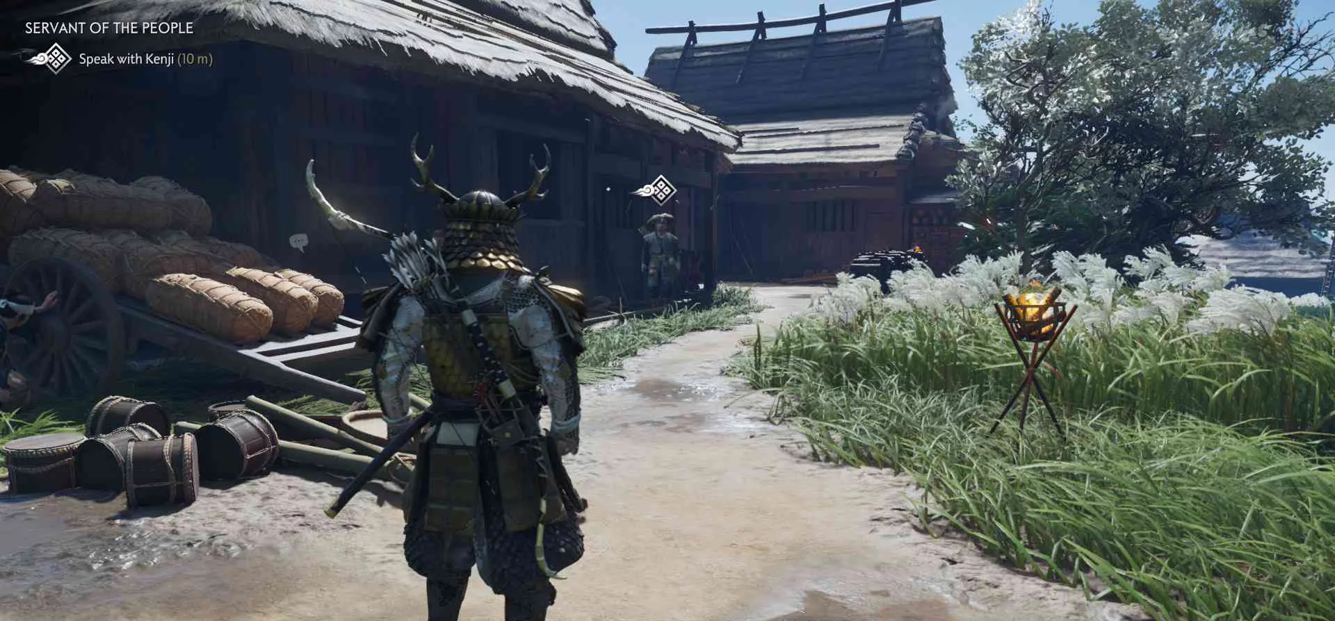 Сэнсэй Исикава планирует укрыться в соседнем крестьянском доме. Нужно поговорить с сенсеем об охоте на Томоэ.