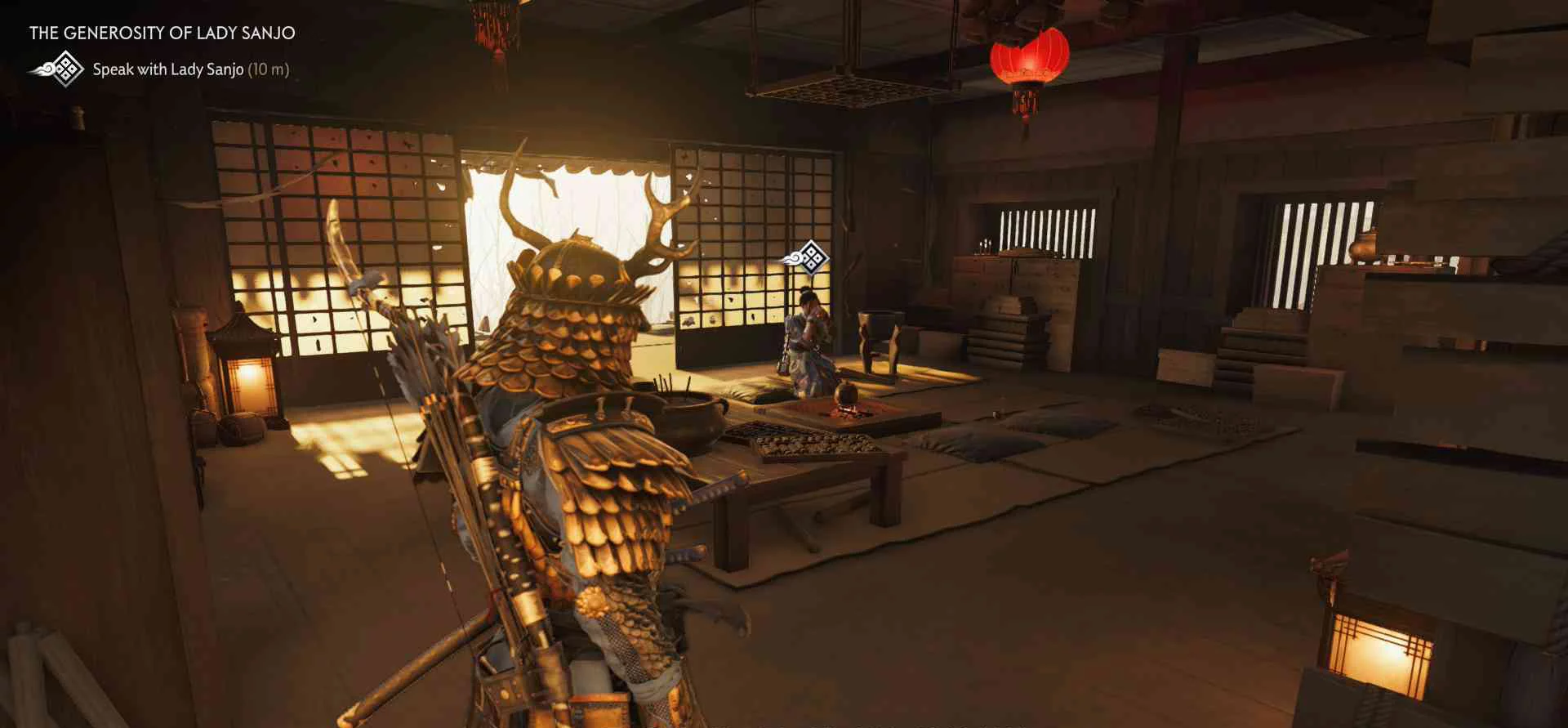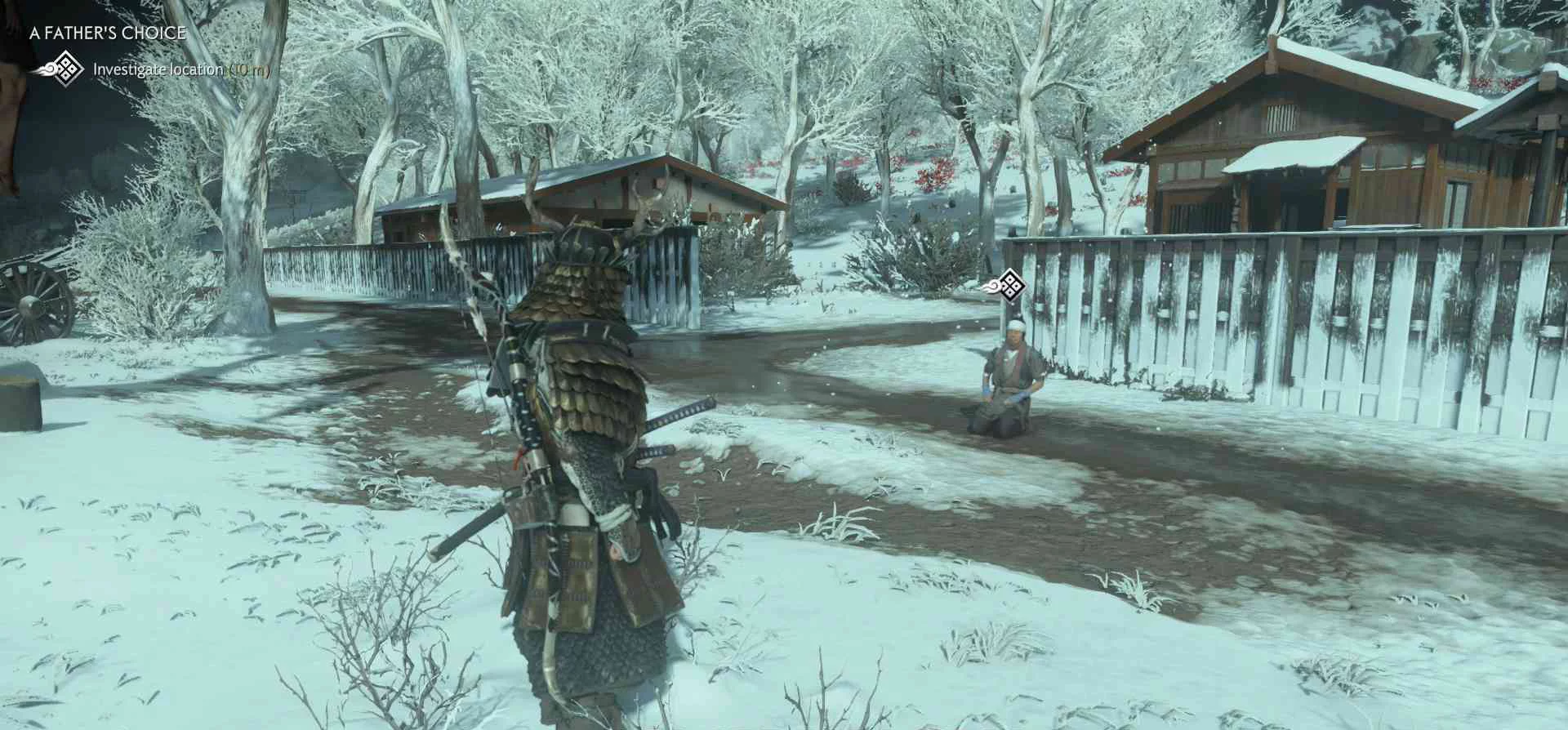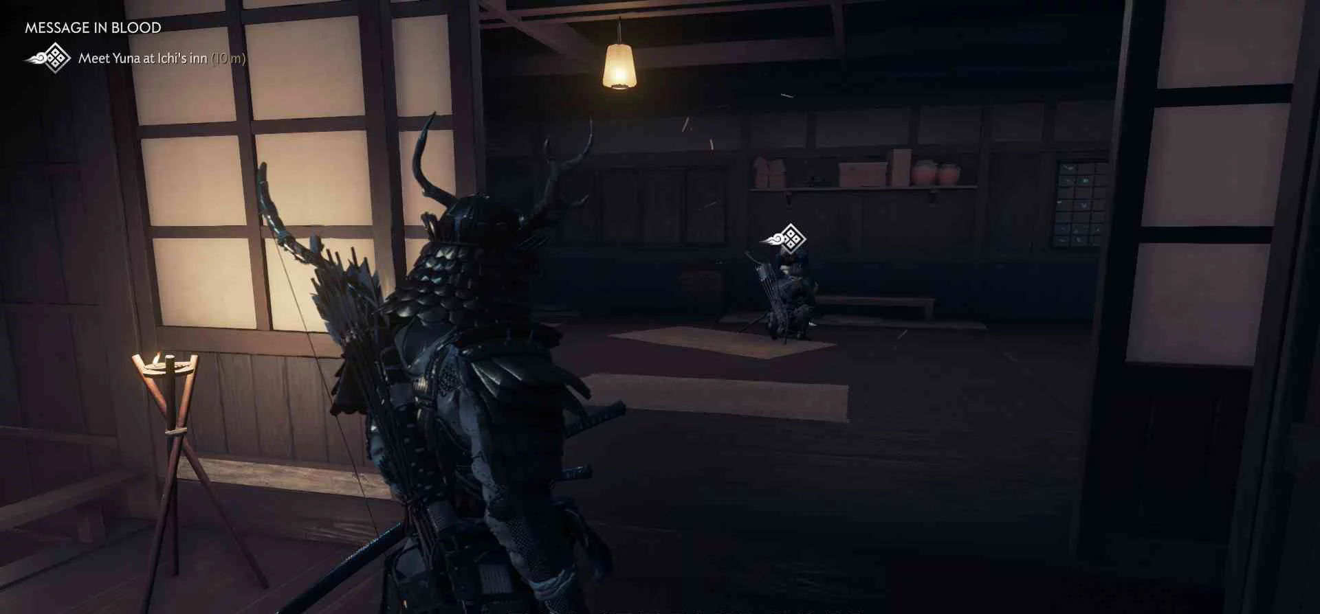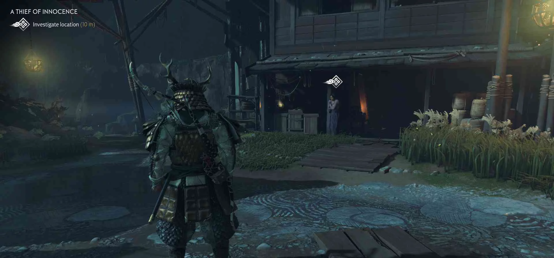 Сэнсэй Исикава планирует укрыться в соседнем крестьянском доме. Нужно поговорить с сенсеем об охоте на Томоэ.