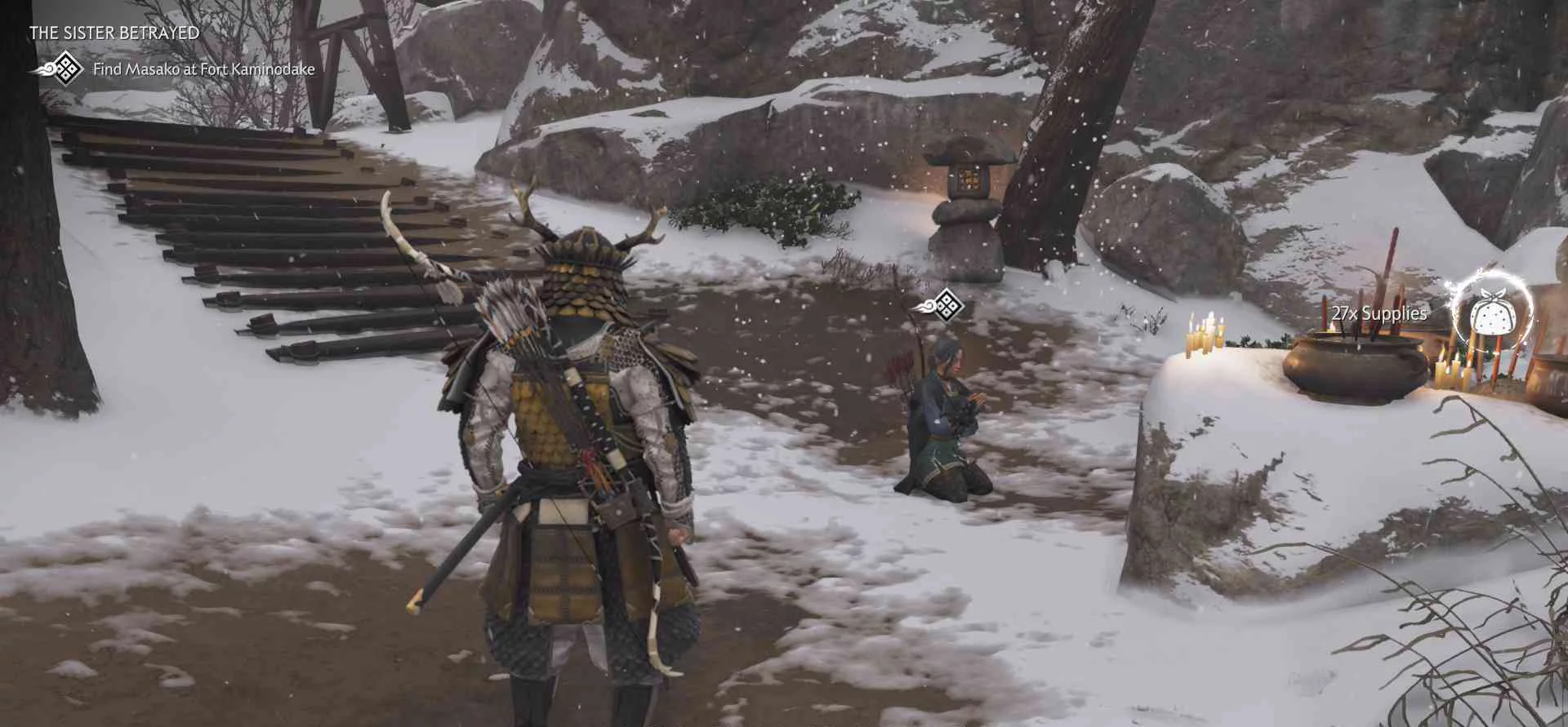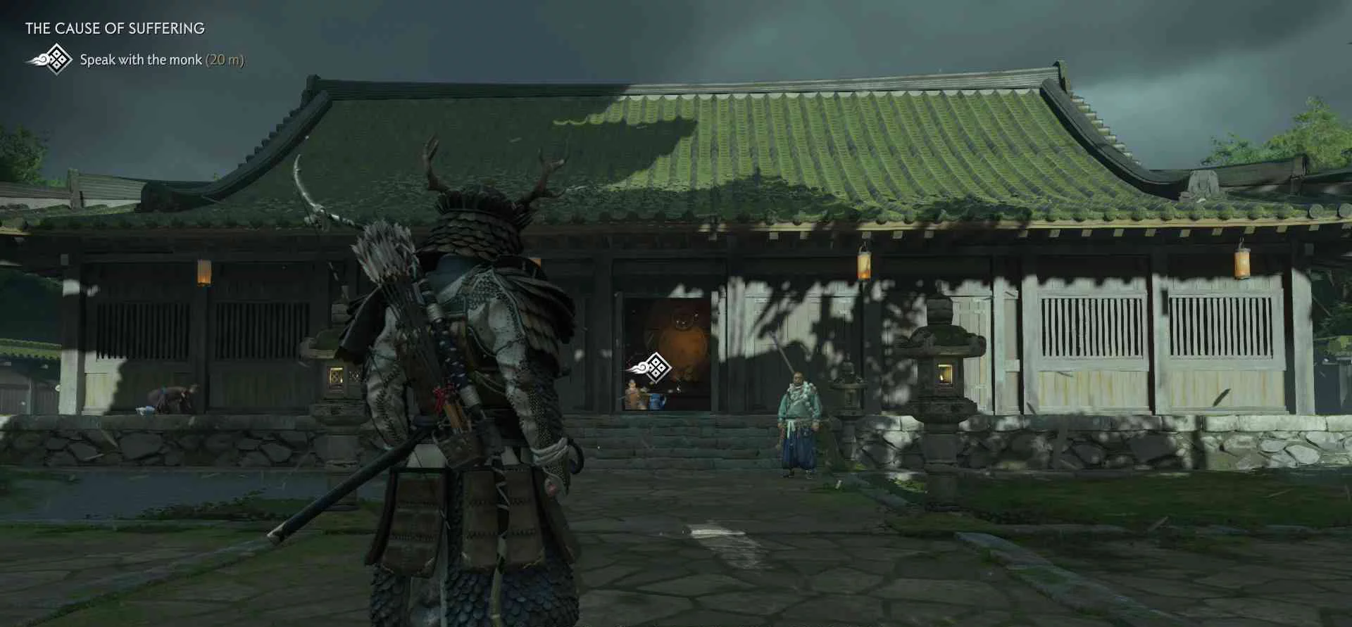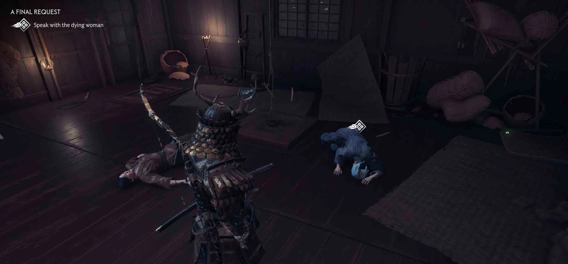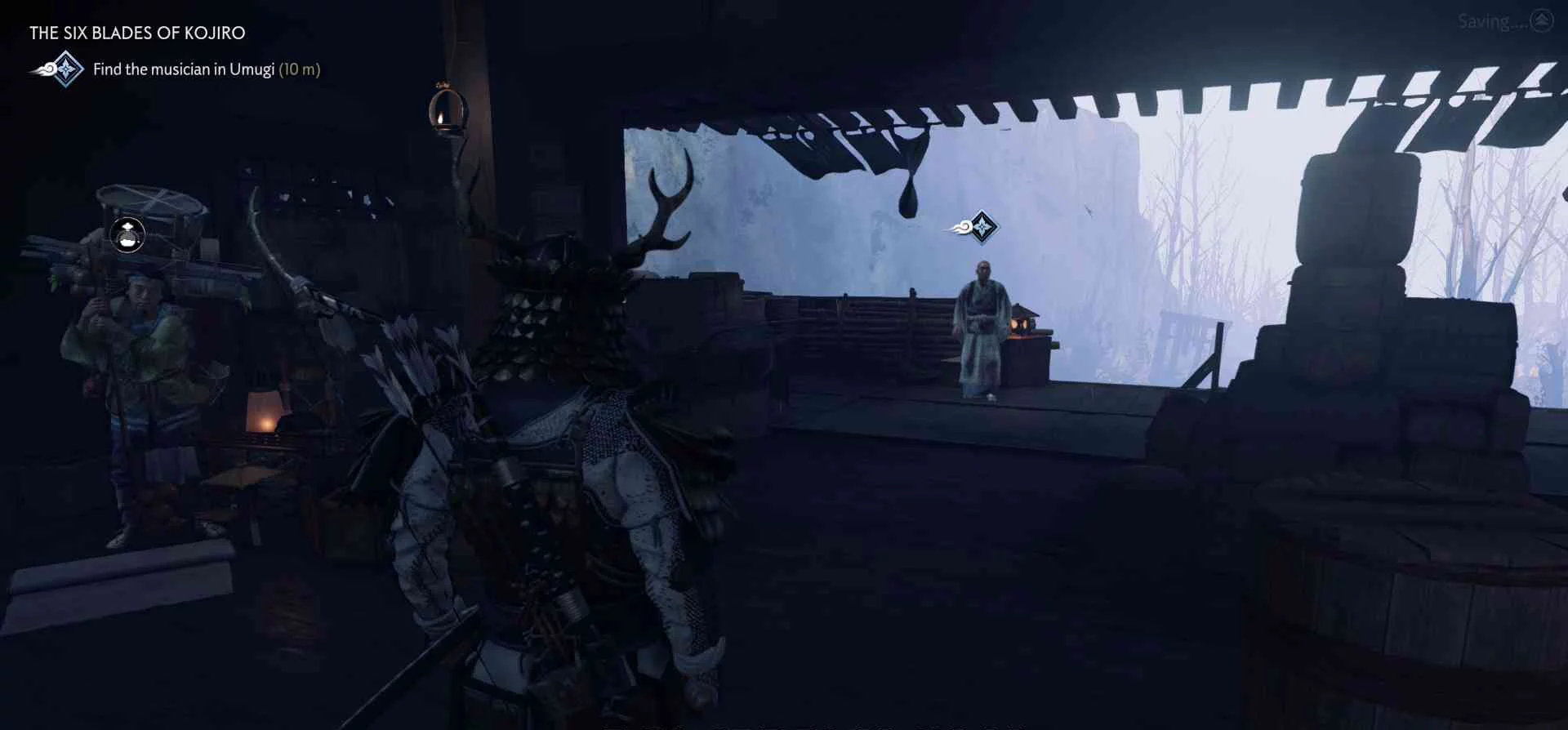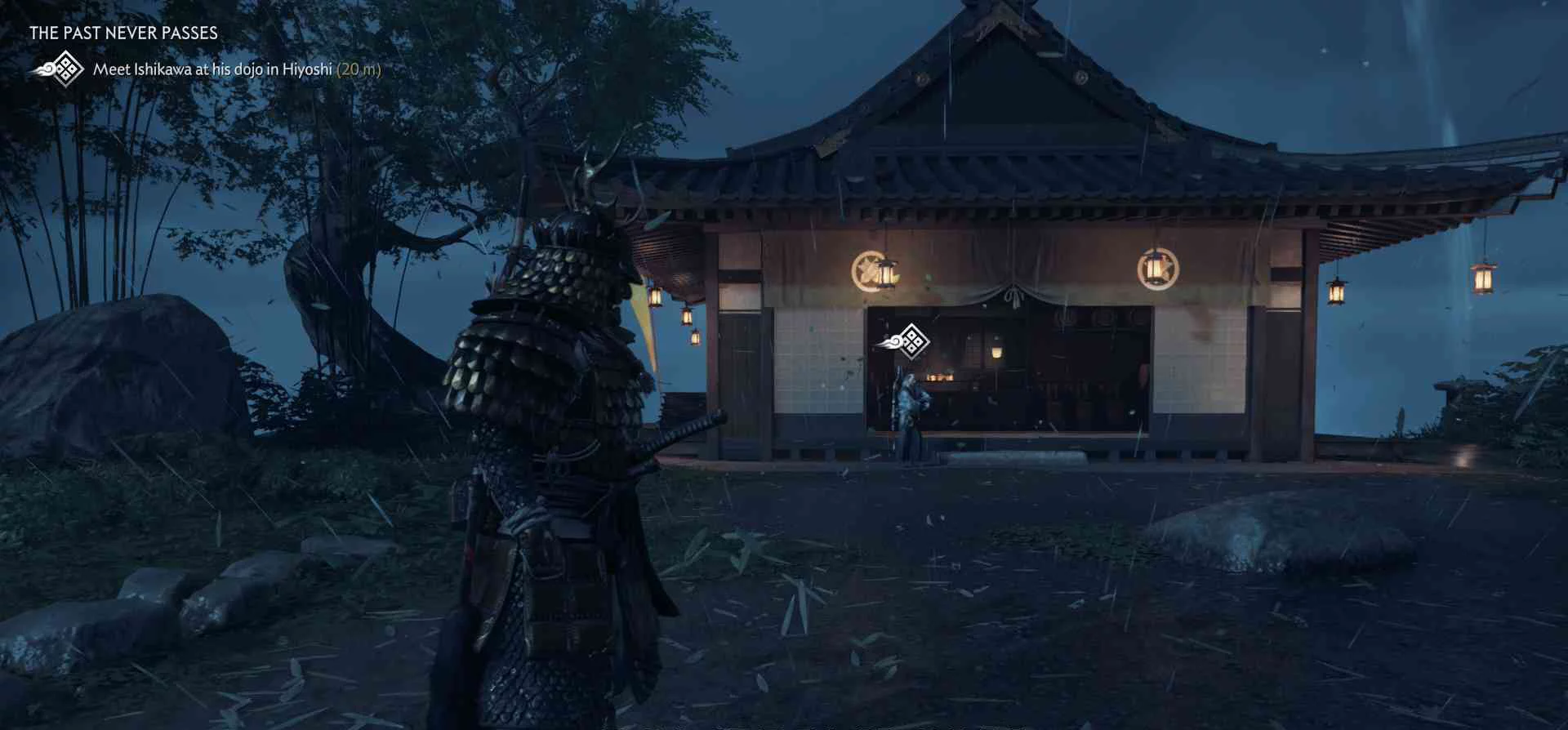 Сэнсэй Исикава планирует укрыться в соседнем крестьянском доме. Нужно поговорить с сенсеем об охоте на Томоэ.