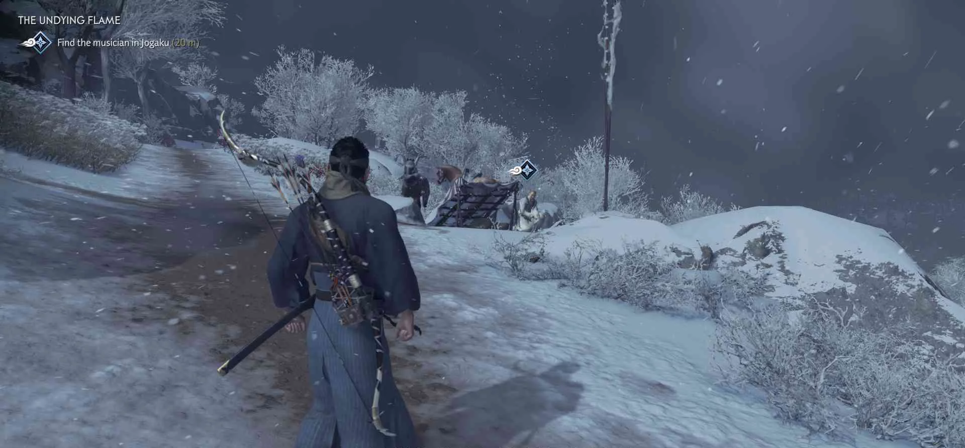 Монголы взяли мост, ведущий к источникам Хиёси. Это мешает жителям Цусимы безопасно путешествовать. Дзину нужно очистить мост от захватчиков.