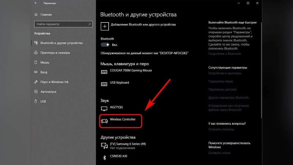 Способ 2: Bluetooth. Обладатели компьютеров с Bluetooth-модулем могут играть без провода, для этого сделайте следующее: