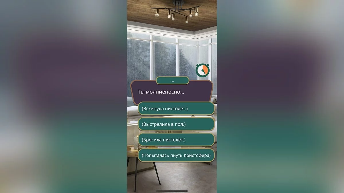 верный выбор). - Бросила пистолет (Ты выстрелила себе в ногу! Вернись во времени назад и попробуй снова!).