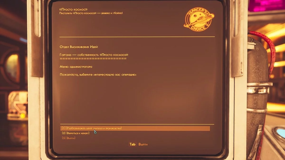 Имея в распоряжении законсервированный глаз вы можете попасть в Отдел Высиживания Идей. Покиньте бар и следуйте за меткой на карте. По дороге вы встретите несколько групп разбойников и мутантов. Используйте глаз на терминал перед входом в Отдел, осмотритесь и поднимитесь на второй этаж. Убейте парочку мародеров, пройдите через два помещения и найдите лестницу на третий этаж. В правом нижнем углу карты вы найдете комнату с нужным терминалом. Взаимодействуйте с ним: разблокируйте лифт, а также центр синтеза и производства.