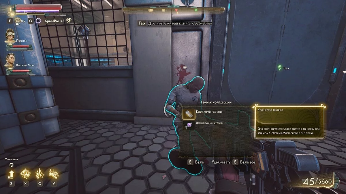 Добыть трофей несложно. Спуститесь в подвал на лифте. В коридоре ходят два робота — вы можете проскользнуть мимо них, либо ликвидировать (на ваш выбор). Перед входом в запертую комнату вы найдете труп с ключ-картой техника. Используйте ее, чтобы открыть дверь, поднимитесь на втором лифте и заберите трофей. Вернув украденную вещь Кларенсу, КПК обновится и вы получите еще два задания.