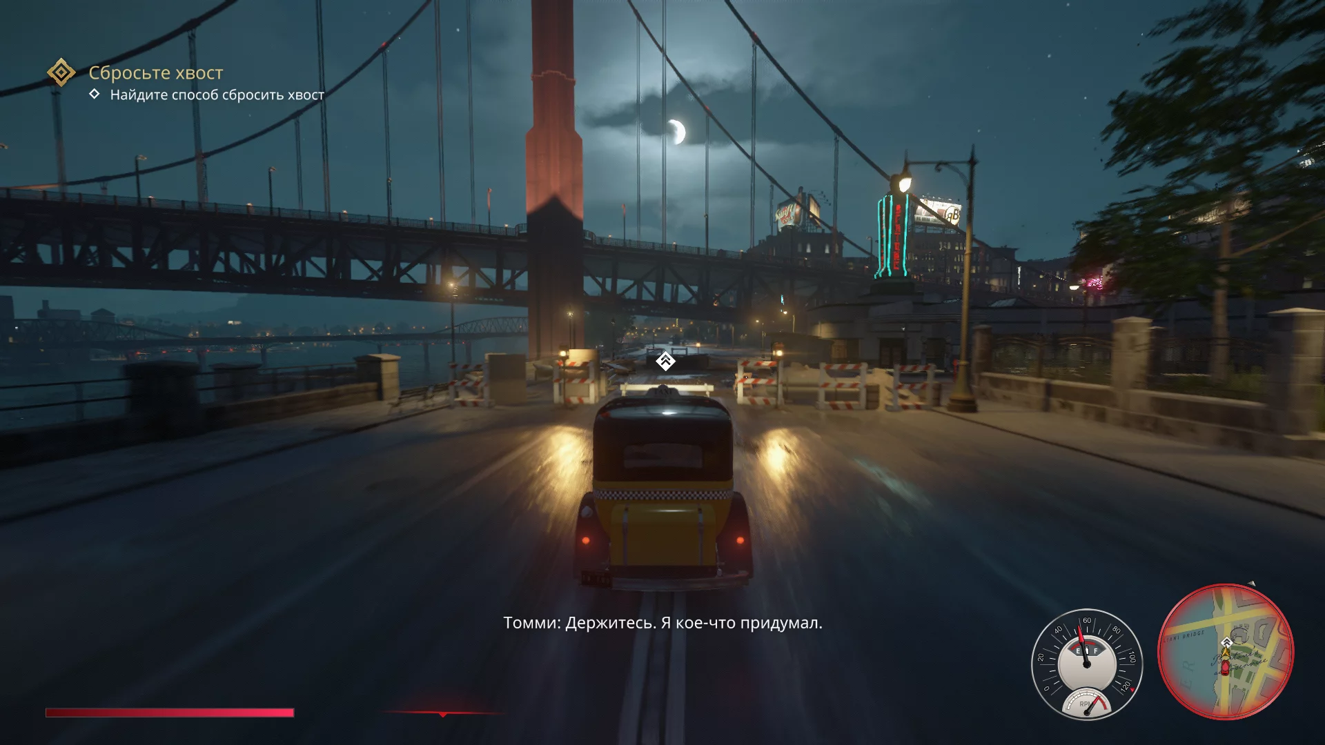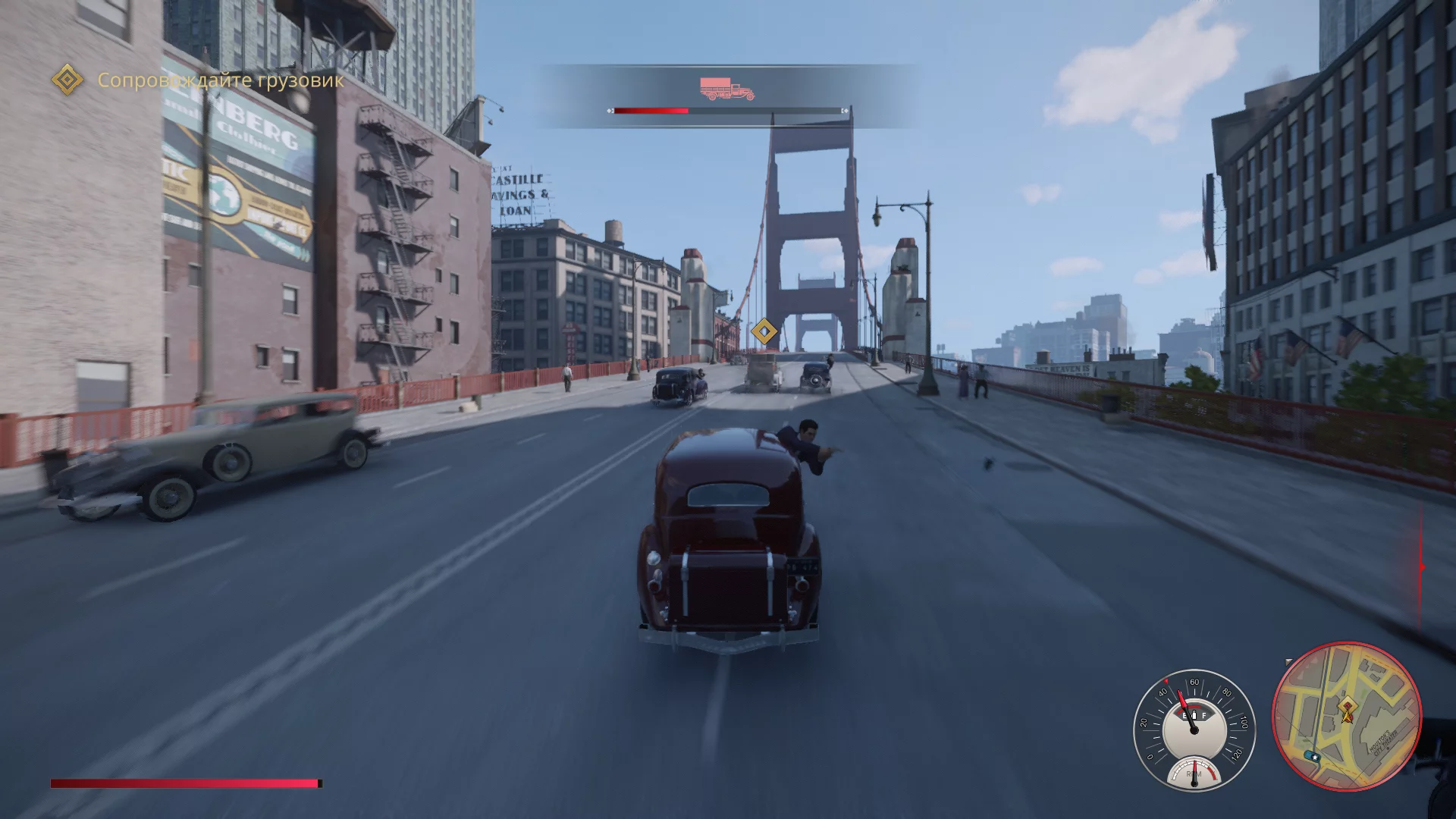 Едем в ресторан к Сэму и Поли. После перестрелки берем на столе журнал. Выбегаем на улицу, Томми садится на мотоцикл и бросается в погоню. Осторожно, на мосту будет авария, придется объезжать машины. Дальше будет еще одна авария и скопление митингующих, которых придется объехать.