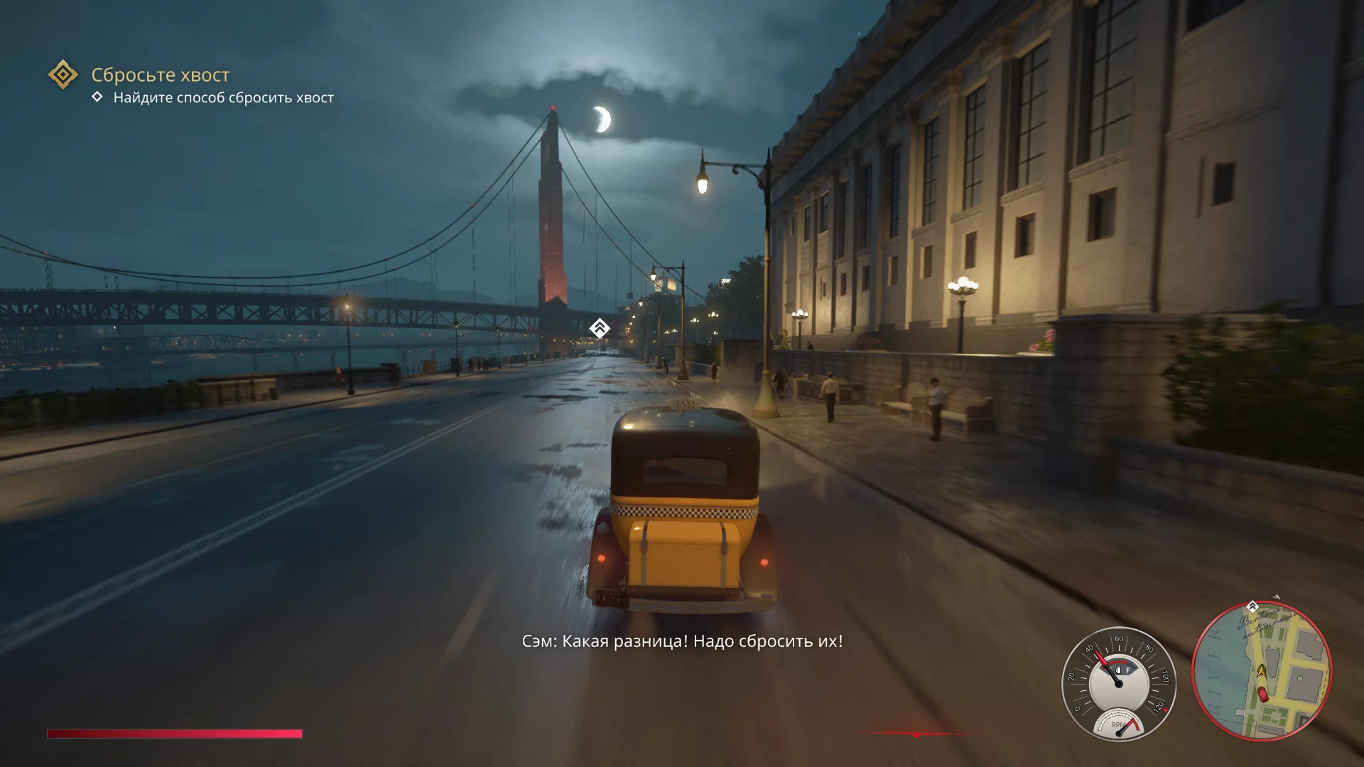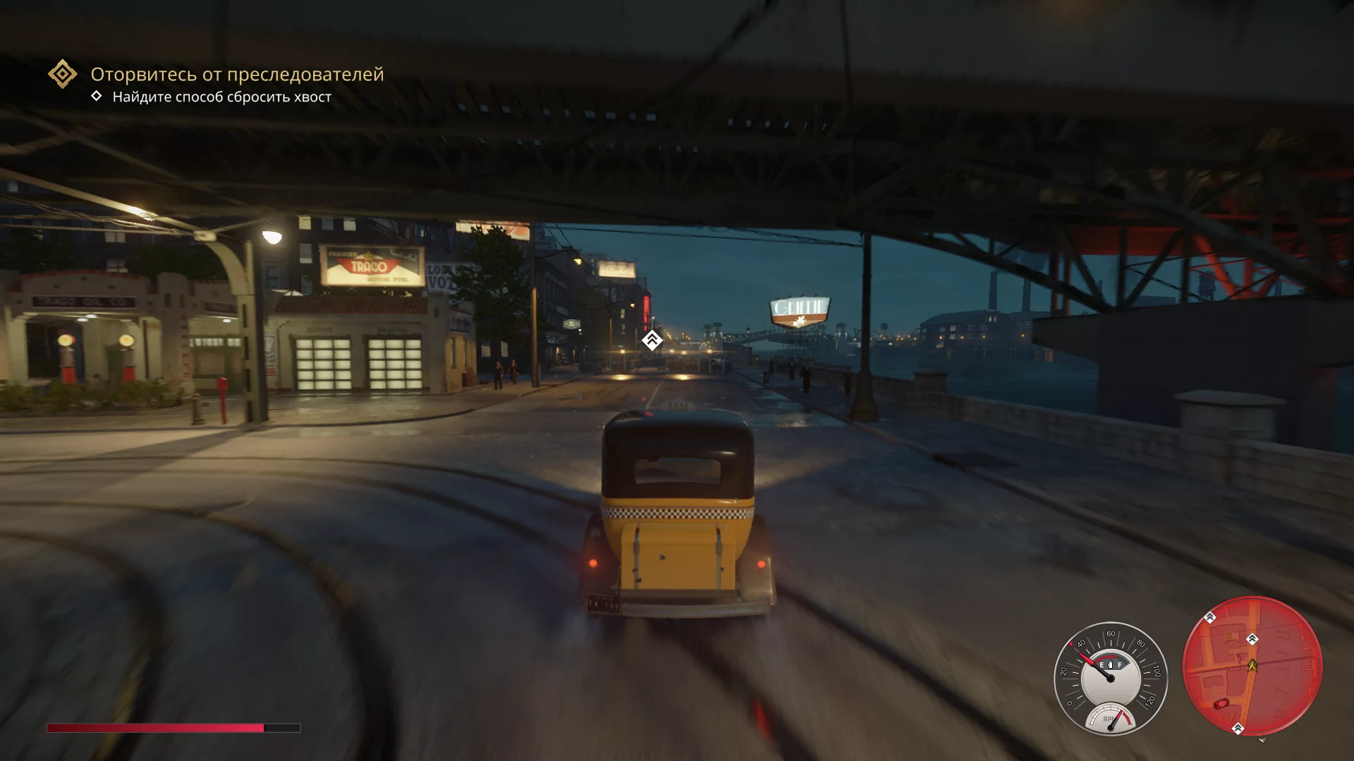 Задание начинается с погони. Нам предстоит уехать от противников на такси. Двигаемся по дороге и направо. Ничего сложного тут нет, после кат-сцены часть противников прекратит преследование.