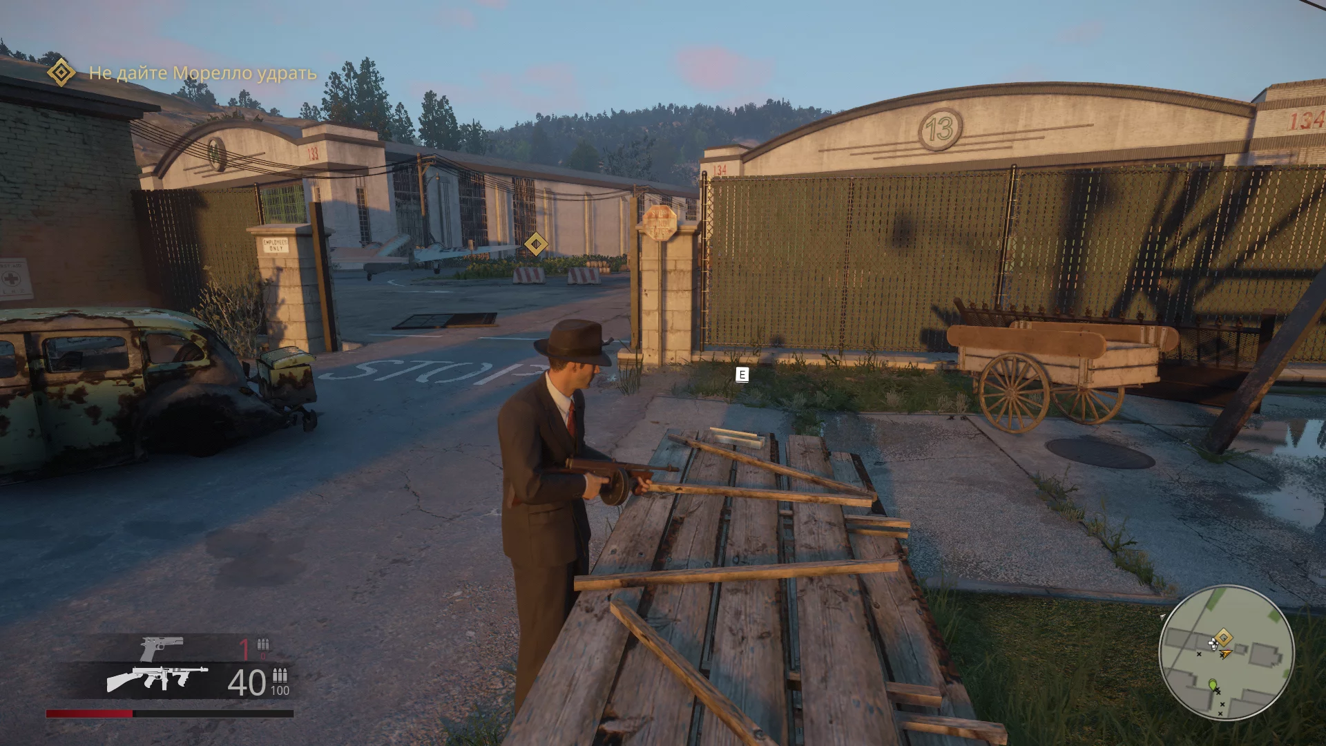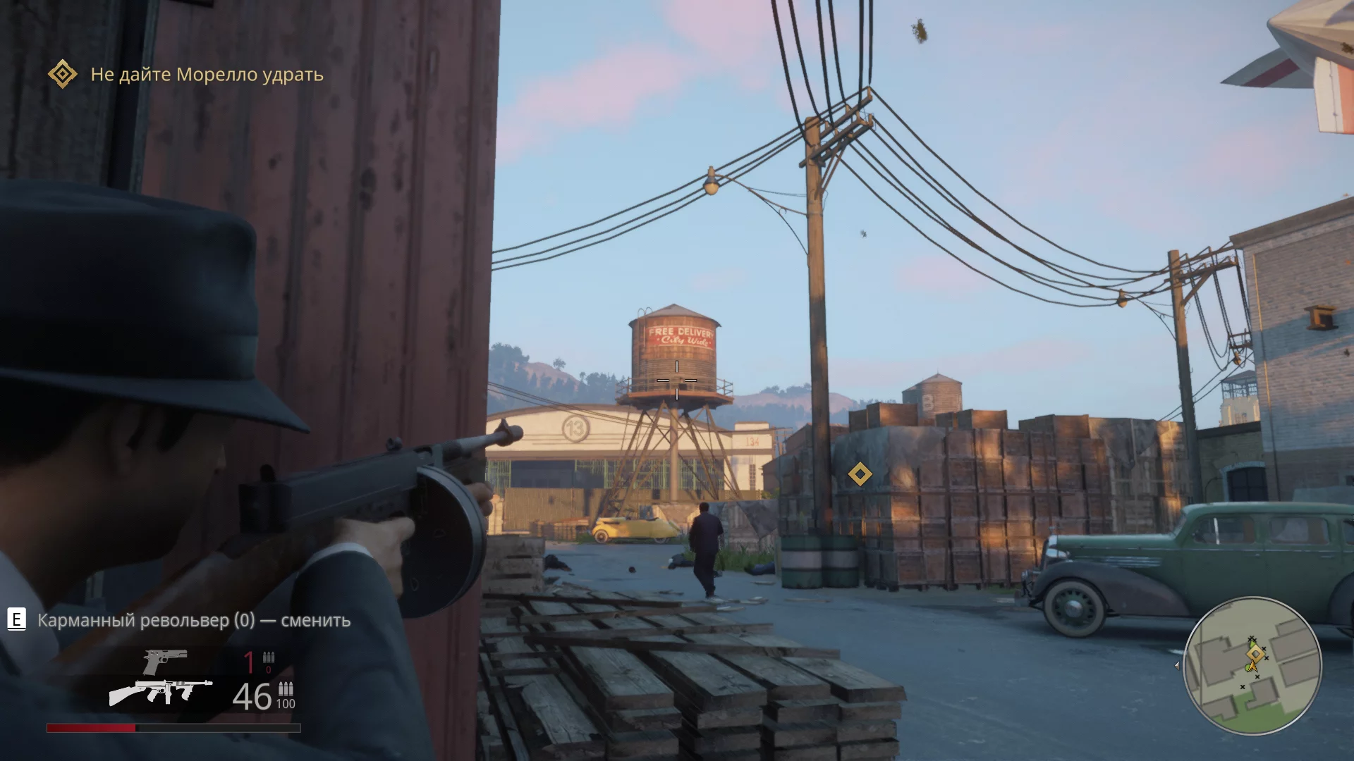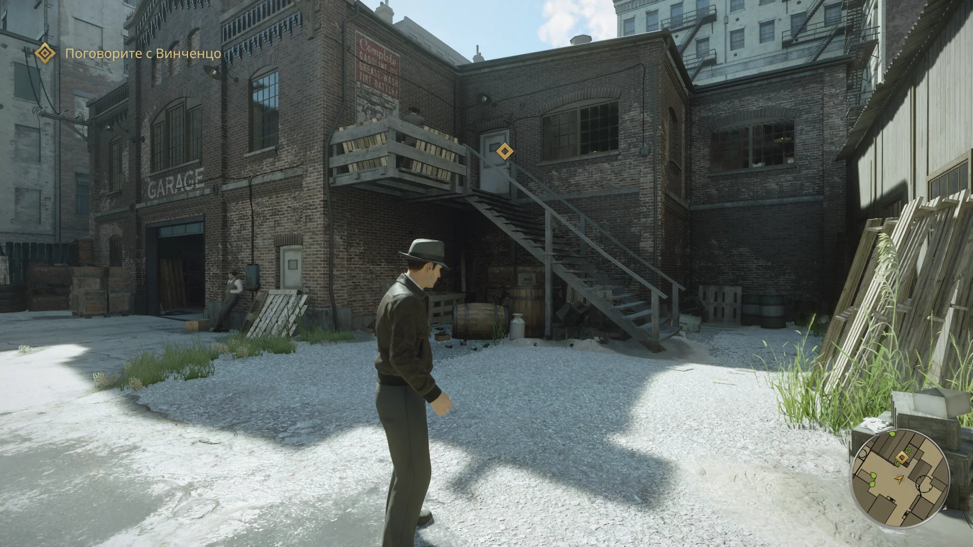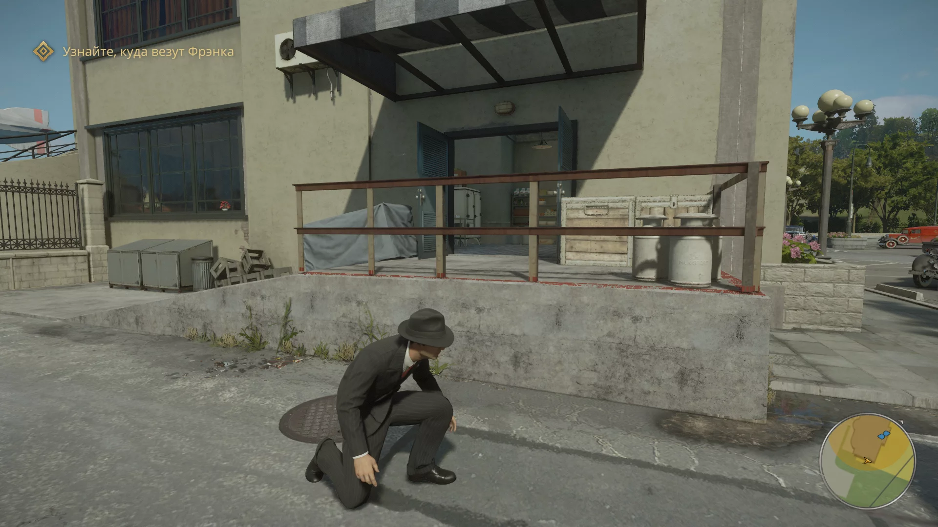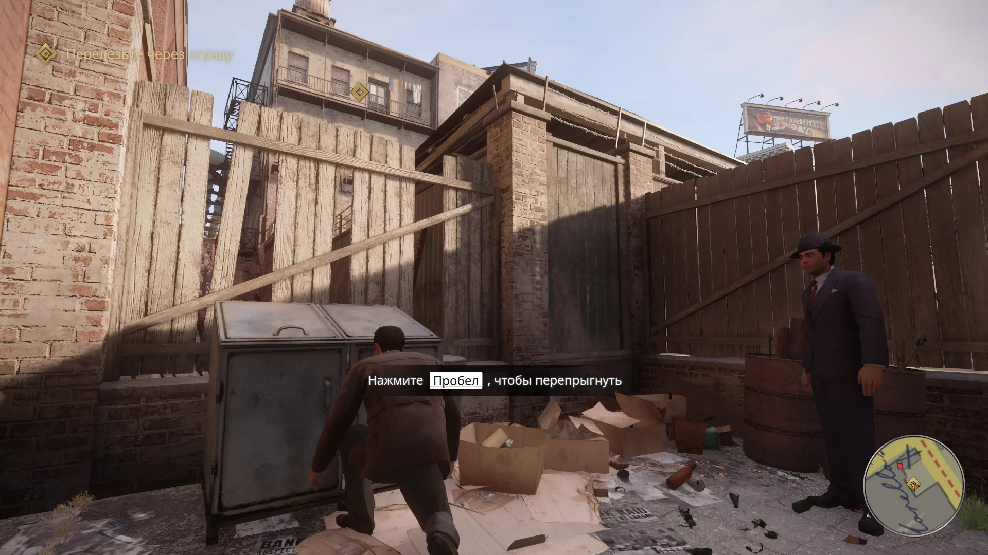 Отправляемся к бару Морелло. Идем за Поли и крадемся мимо гангстеров. Забираемся на крышу и спускаемся во двор. Вырубаем охранника, с которым говорит Поли. Достаем биту и разносим машину.
