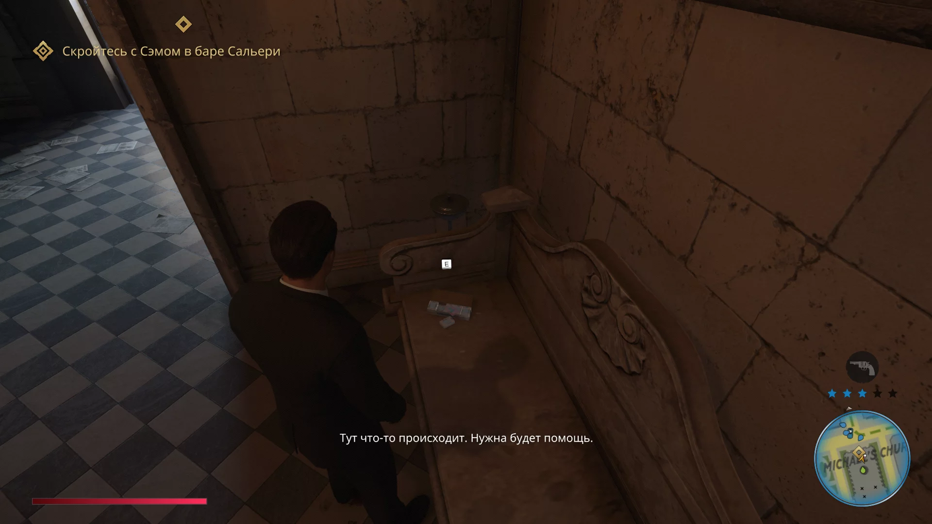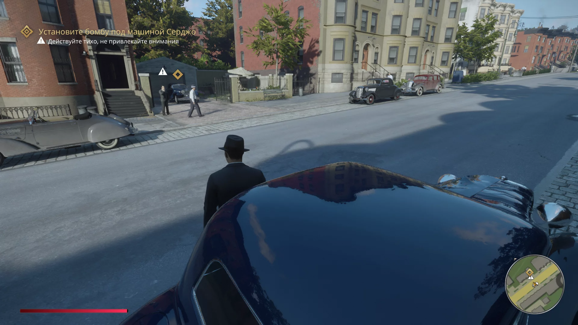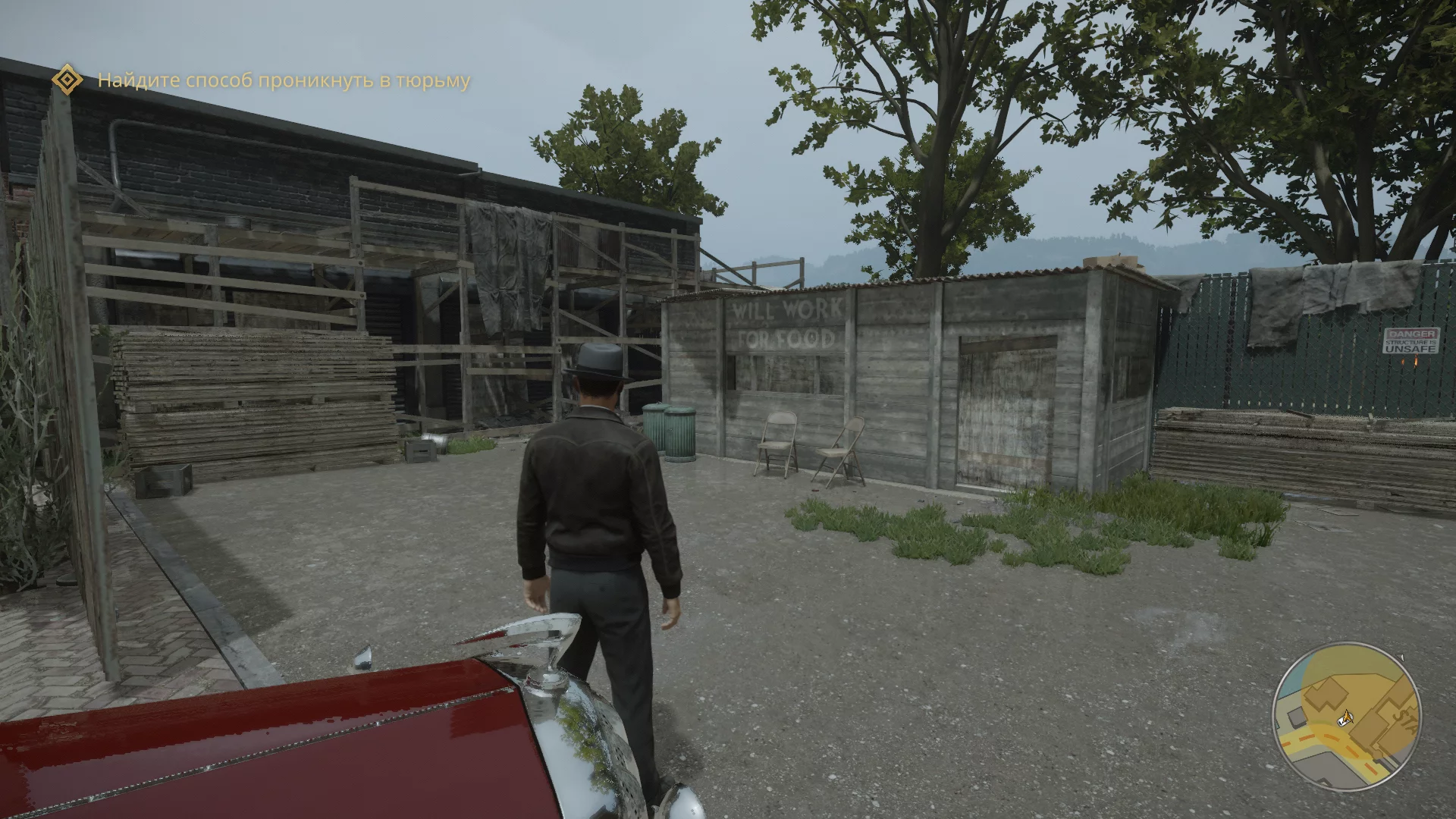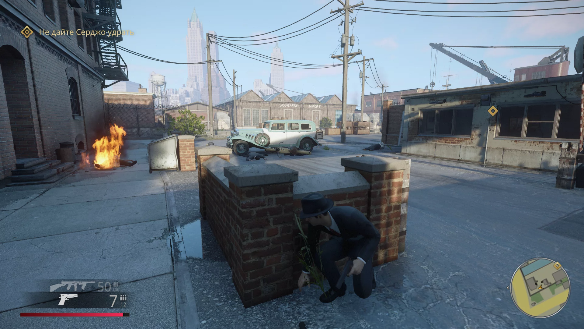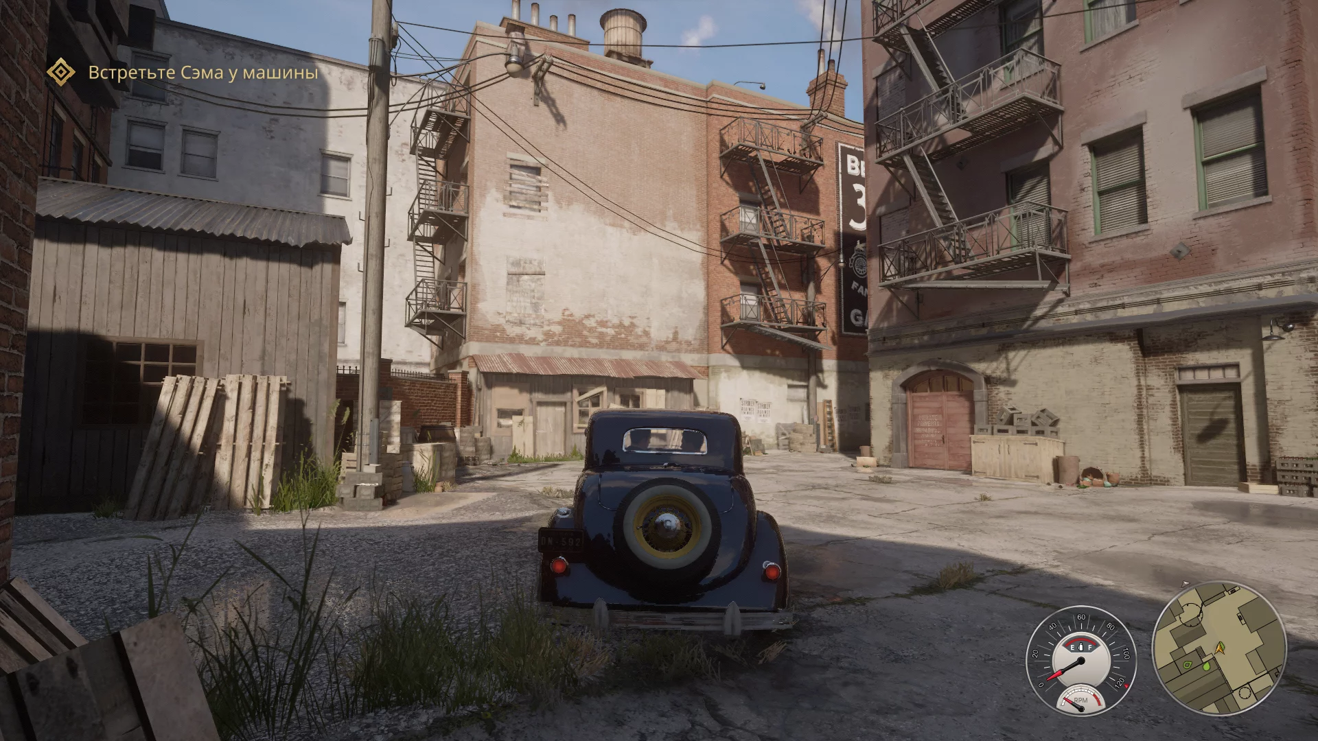 Отправляемся к бару Морелло. Идем за Поли и крадемся мимо гангстеров. Забираемся на крышу и спускаемся во двор. Вырубаем охранника, с которым говорит Поли. Достаем биту и разносим машину.
